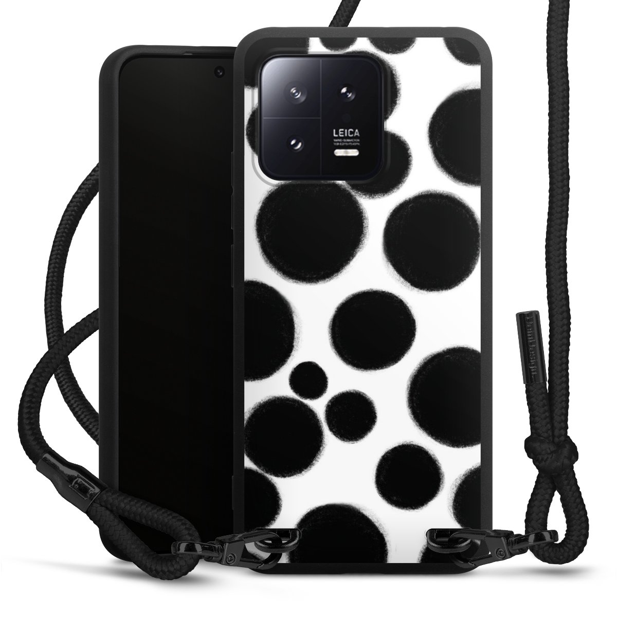 The matt black silicone case is made of flexible TPU (thermoplastic polyurethane) and offers robust protection. The durable, unbreakable material makes the cover flexible and dimensionally stable at the same time. The matte surface makes your design stand out more and is less susceptible to fingerprints and dirt. The stylish trend accessory fits comfortably in the hand and is perfectly complemented by the fabric (polyester) mobile phone strap. The braided fabric strap is approx. 1.70 metres long with a diameter of approx. 0.5 cm. Due to the special knotting technique, the length of the strap can be adjusted by simply pulling it, so that you can adapt it individually to your wishes. The practical case to wear around your neck is available with the fabric strap in black. As a little icing on the cake, we have provided the strap with a chic metal fastener in matt black. The strap is securely fastened to the case with loops made of high-quality genuine leather and press studs. The ends of the fabric strap are covered with metallic end caps and thus protected from fraying.