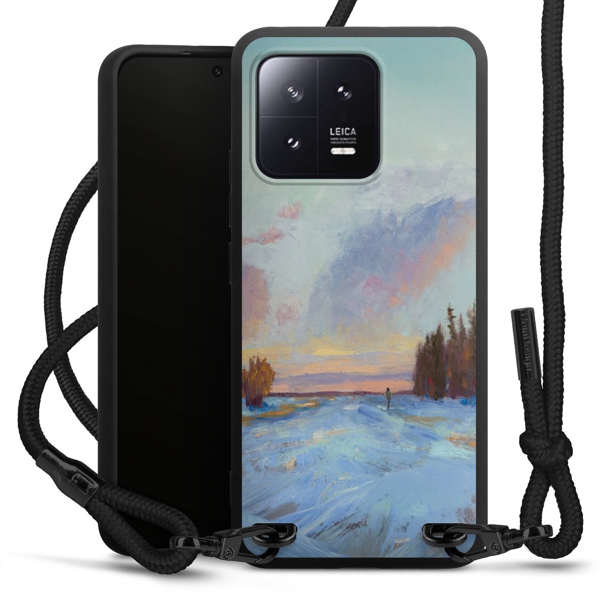 We use the solid direct print process for this phone case, which is why the print area only covers the back and the edge remains unprinted. The case to wear around your neck can be ordered unprinted, fully printed, or partially printed. For your design, either choose one of our exclusive shop motifs or get creative and create your own design, for example with photos and overlays. Design your own personal trend accessory and make an individual statement on the streets!