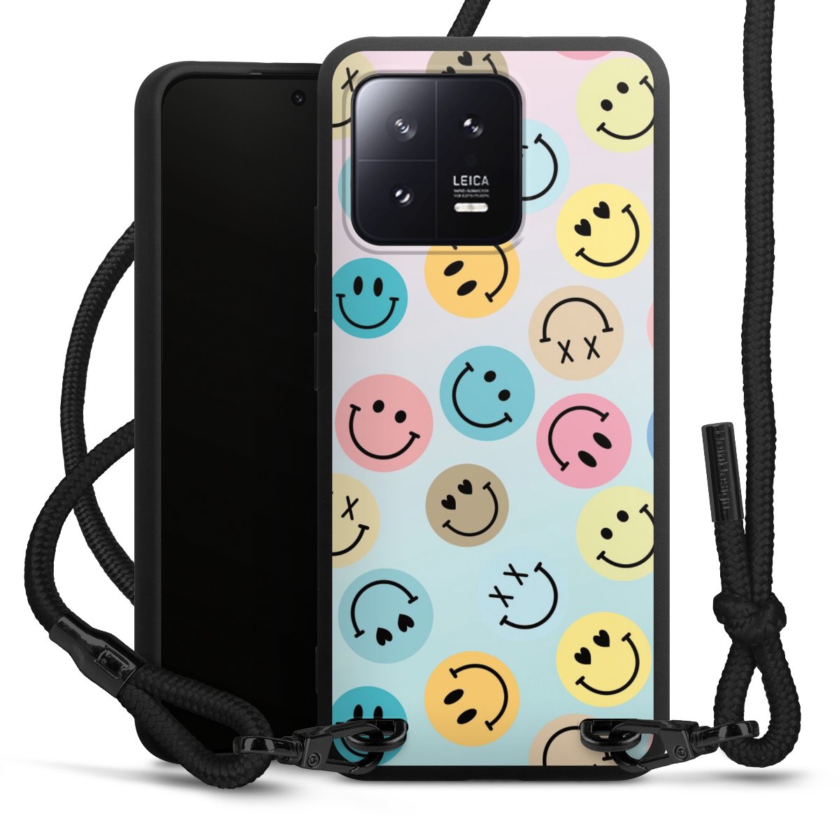 We use the solid direct print process for this phone case, which is why the print area only covers the back and the edge remains unprinted. The case to wear around your neck can be ordered unprinted, fully printed, or partially printed. For your design, either choose one of our exclusive shop motifs or get creative and create your own design, for example with photos and overlays. Design your own personal trend accessory and make an individual statement on the streets!