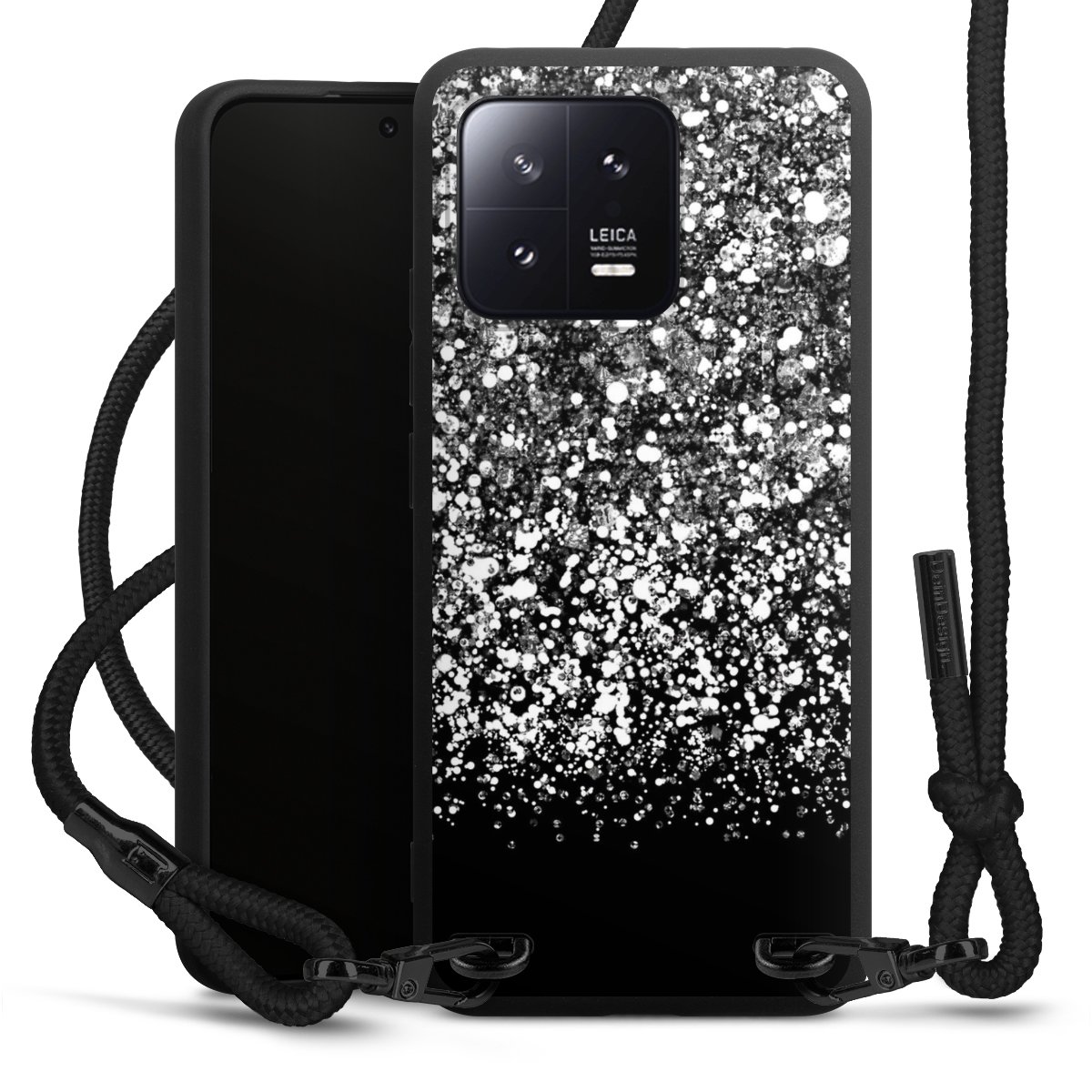 The matt black silicone case is made of flexible TPU (thermoplastic polyurethane) and offers robust protection. The durable, unbreakable material makes the cover flexible and dimensionally stable at the same time. The matte surface makes your design stand out more and is less susceptible to fingerprints and dirt. The stylish trend accessory fits comfortably in the hand and is perfectly complemented by the fabric (polyester) mobile phone strap. The braided fabric strap is approx. 1.70 metres long with a diameter of approx. 0.5 cm. Due to the special knotting technique, the length of the strap can be adjusted by simply pulling it, so that you can adapt it individually to your wishes. The practical case to wear around your neck is available with the fabric strap in black. As a little icing on the cake, we have provided the strap with a chic metal fastener in matt black. The strap is securely fastened to the case with loops made of high-quality genuine leather and press studs. The ends of the fabric strap are covered with metallic end caps and thus protected from fraying.