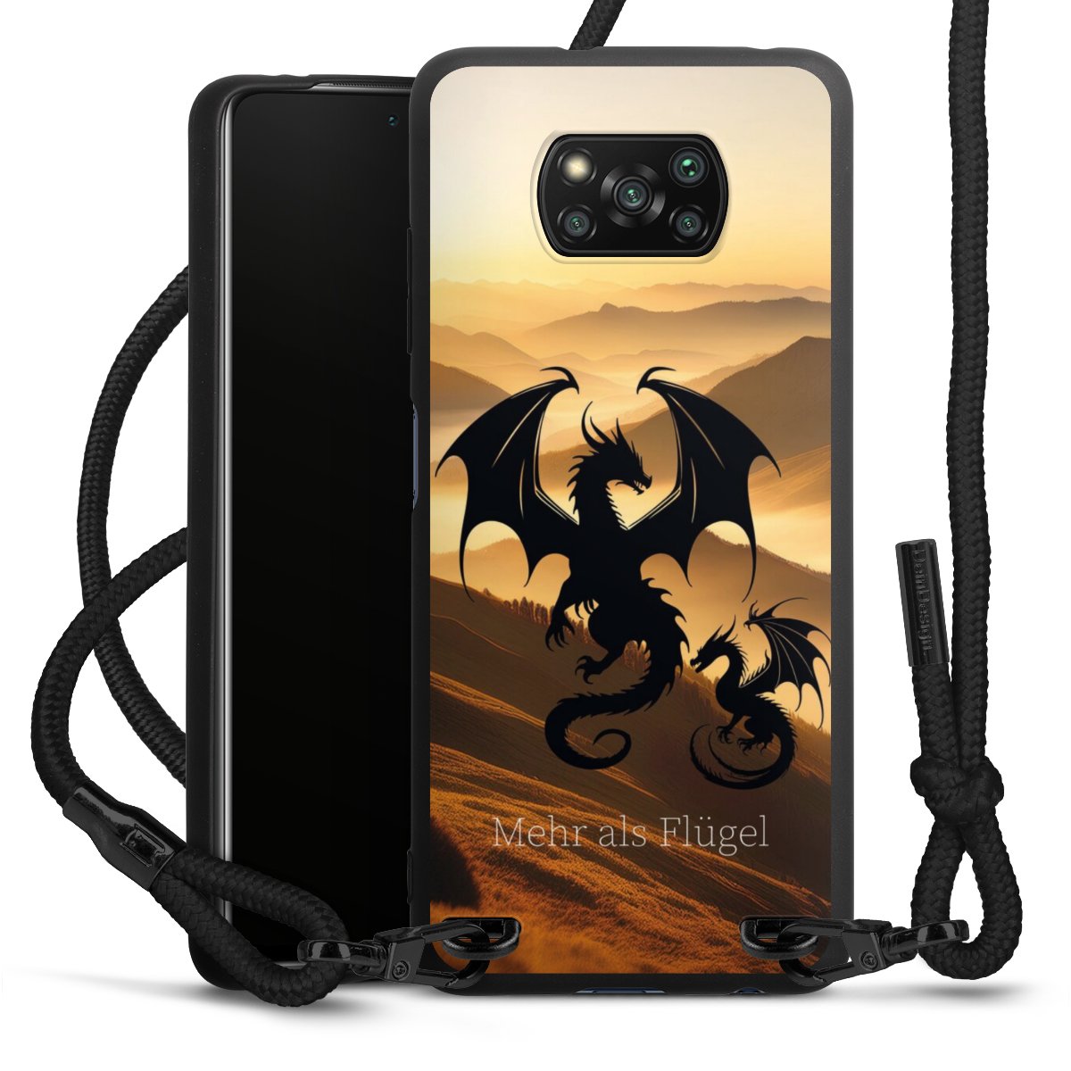 The matt black silicone case is made of flexible TPU (thermoplastic polyurethane) and offers robust protection. The durable, unbreakable material makes the cover flexible and dimensionally stable at the same time. The matte surface makes your design stand out more and is less susceptible to fingerprints and dirt. The stylish trend accessory fits comfortably in the hand and is perfectly complemented by the fabric (polyester) mobile phone strap. The braided fabric strap is approx. 1.70 metres long with a diameter of approx. 0.5 cm. Due to the special knotting technique, the length of the strap can be adjusted by simply pulling it, so that you can adapt it individually to your wishes. The practical case to wear around your neck is available with the fabric strap in black. As a little icing on the cake, we have provided the strap with a chic metal fastener in matt black. The strap is securely fastened to the case with loops made of high-quality genuine leather and press studs. The ends of the fabric strap are covered with metallic end caps and thus protected from fraying.