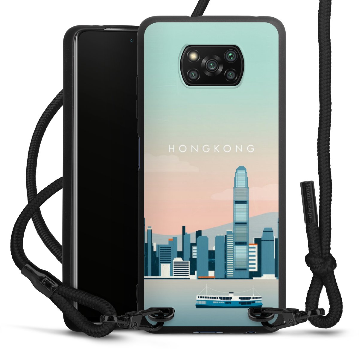 We use the solid direct print process for this phone case, which is why the print area only covers the back and the edge remains unprinted. The case to wear around your neck can be ordered unprinted, fully printed, or partially printed. For your design, either choose one of our exclusive shop motifs or get creative and create your own design, for example with photos and overlays. Design your own personal trend accessory and make an individual statement on the streets!