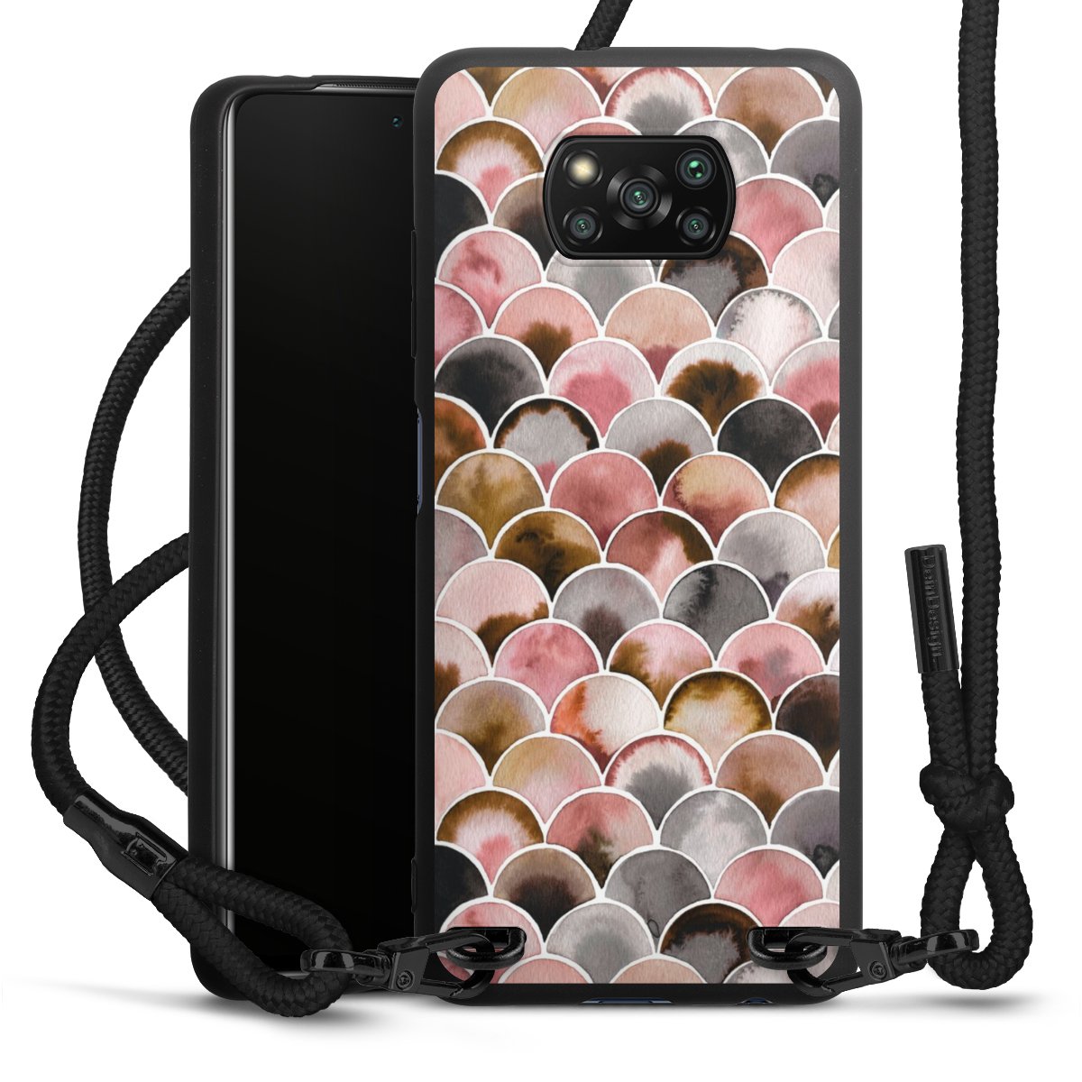 The matt black silicone case is made of flexible TPU (thermoplastic polyurethane) and offers robust protection. The durable, unbreakable material makes the cover flexible and dimensionally stable at the same time. The matte surface makes your design stand out more and is less susceptible to fingerprints and dirt. The stylish trend accessory fits comfortably in the hand and is perfectly complemented by the fabric (polyester) mobile phone strap. The braided fabric strap is approx. 1.70 metres long with a diameter of approx. 0.5 cm. Due to the special knotting technique, the length of the strap can be adjusted by simply pulling it, so that you can adapt it individually to your wishes. The practical case to wear around your neck is available with the fabric strap in black. As a little icing on the cake, we have provided the strap with a chic metal fastener in matt black. The strap is securely fastened to the case with loops made of high-quality genuine leather and press studs. The ends of the fabric strap are covered with metallic end caps and thus protected from fraying.