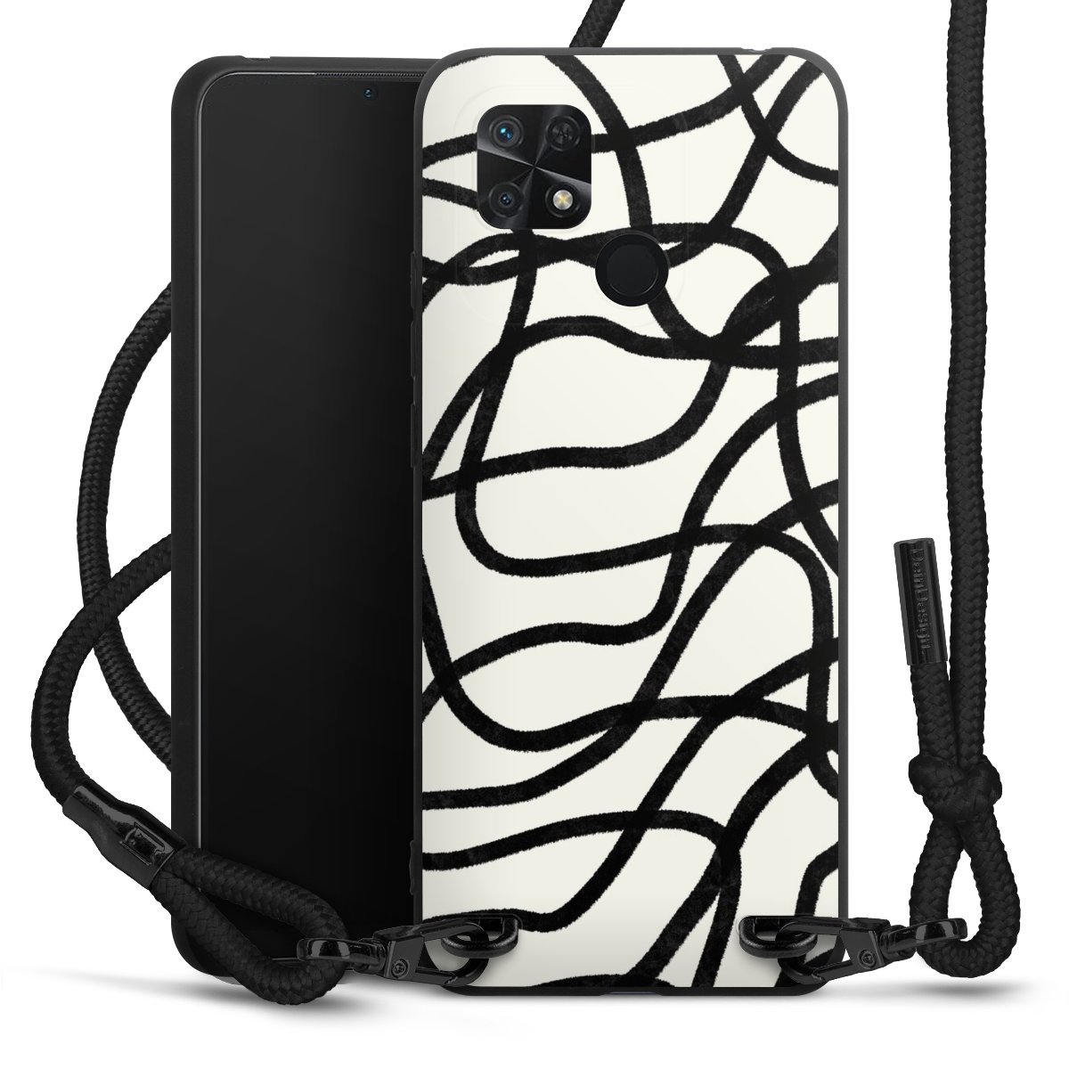 The matt black silicone case is made of flexible TPU (thermoplastic polyurethane) and offers robust protection. The durable, unbreakable material makes the cover flexible and dimensionally stable at the same time. The matte surface makes your design stand out more and is less susceptible to fingerprints and dirt. The stylish trend accessory fits comfortably in the hand and is perfectly complemented by the fabric (polyester) mobile phone strap. The braided fabric strap is approx. 1.70 metres long with a diameter of approx. 0.5 cm. Due to the special knotting technique, the length of the strap can be adjusted by simply pulling it, so that you can adapt it individually to your wishes. The practical case to wear around your neck is available with the fabric strap in black. As a little icing on the cake, we have provided the strap with a chic metal fastener in matt black. The strap is securely fastened to the case with loops made of high-quality genuine leather and press studs. The ends of the fabric strap are covered with metallic end caps and thus protected from fraying.