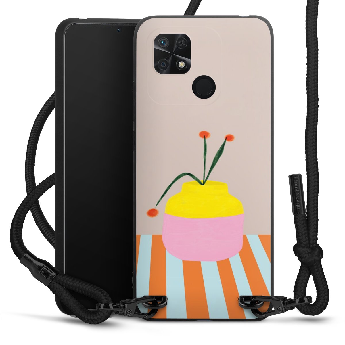 We use the solid direct print process for this phone case, which is why the print area only covers the back and the edge remains unprinted. The case to wear around your neck can be ordered unprinted, fully printed, or partially printed. For your design, either choose one of our exclusive shop motifs or get creative and create your own design, for example with photos and overlays. Design your own personal trend accessory and make an individual statement on the streets!