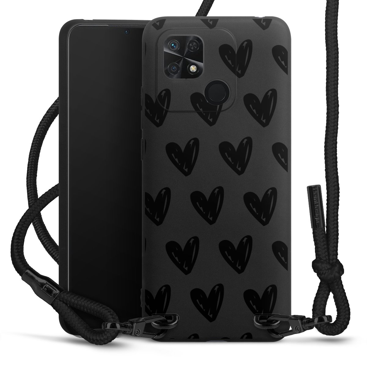 The matt black silicone case is made of flexible TPU (thermoplastic polyurethane) and offers robust protection. The durable, unbreakable material makes the cover flexible and dimensionally stable at the same time. The matte surface makes your design stand out more and is less susceptible to fingerprints and dirt. The stylish trend accessory fits comfortably in the hand and is perfectly complemented by the fabric (polyester) mobile phone strap. The braided fabric strap is approx. 1.70 metres long with a diameter of approx. 0.5 cm. Due to the special knotting technique, the length of the strap can be adjusted by simply pulling it, so that you can adapt it individually to your wishes. The practical case to wear around your neck is available with the fabric strap in black. As a little icing on the cake, we have provided the strap with a chic metal fastener in matt black. The strap is securely fastened to the case with loops made of high-quality genuine leather and press studs. The ends of the fabric strap are covered with metallic end caps and thus protected from fraying.