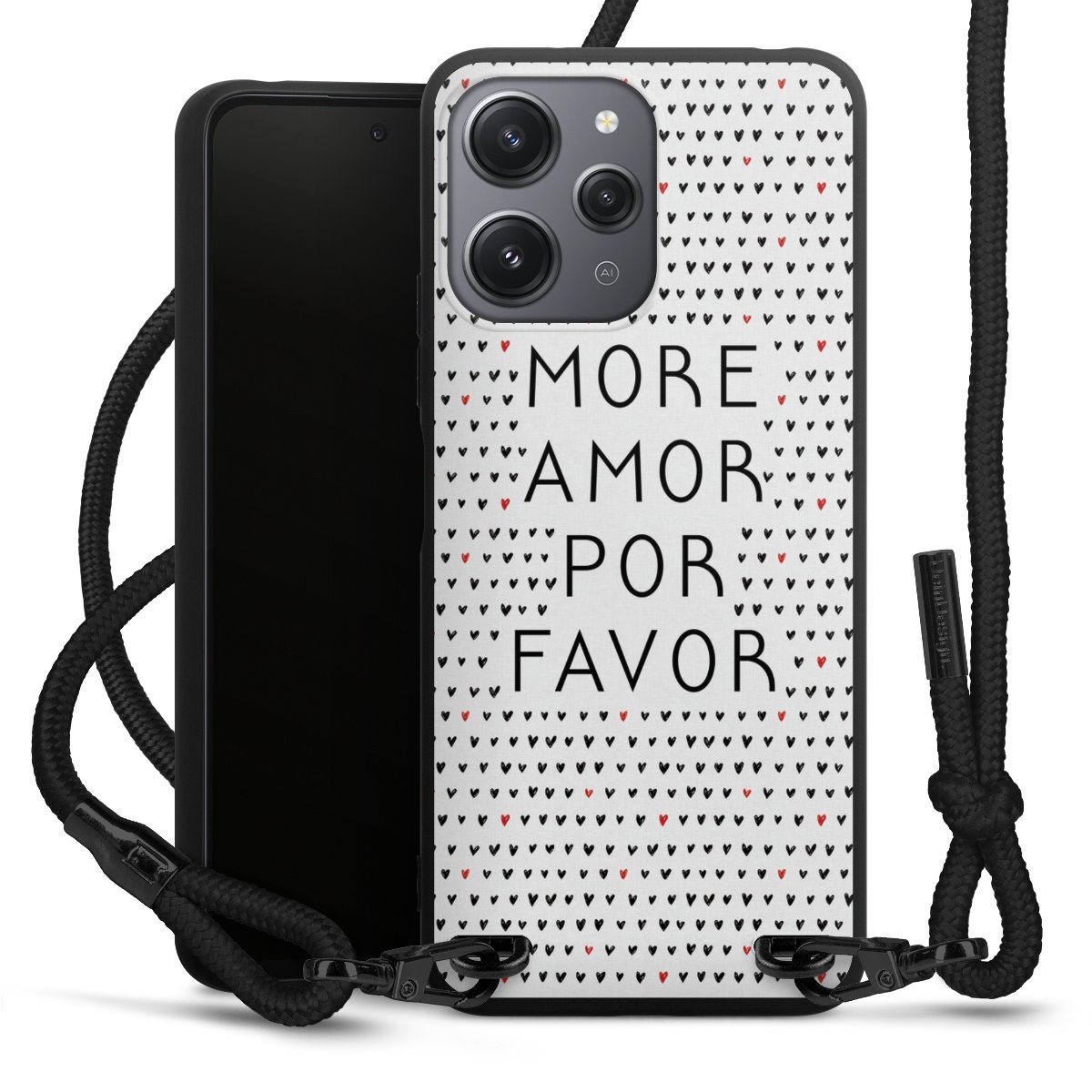 We use the solid direct print process for this phone case, which is why the print area only covers the back and the edge remains unprinted. The case to wear around your neck can be ordered unprinted, fully printed, or partially printed. For your design, either choose one of our exclusive shop motifs or get creative and create your own design, for example with photos and overlays. Design your own personal trend accessory and make an individual statement on the streets!