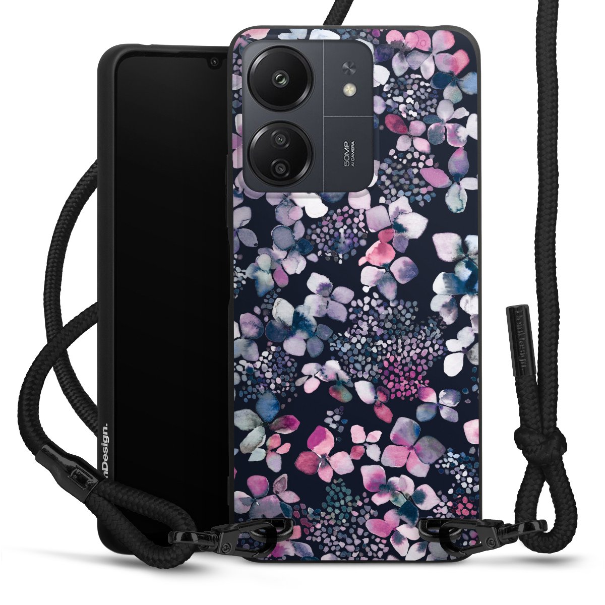 The matt black silicone case is made of flexible TPU (thermoplastic polyurethane) and offers robust protection. The durable, unbreakable material makes the cover flexible and dimensionally stable at the same time. The matte surface makes your design stand out more and is less susceptible to fingerprints and dirt. The stylish trend accessory fits comfortably in the hand and is perfectly complemented by the fabric (polyester) mobile phone strap. The braided fabric strap is approx. 1.70 metres long with a diameter of approx. 0.5 cm. Due to the special knotting technique, the length of the strap can be adjusted by simply pulling it, so that you can adapt it individually to your wishes. The practical case to wear around your neck is available with the fabric strap in black. As a little icing on the cake, we have provided the strap with a chic metal fastener in matt black. The strap is securely fastened to the case with loops made of high-quality genuine leather and press studs. The ends of the fabric strap are covered with metallic end caps and thus protected from fraying.