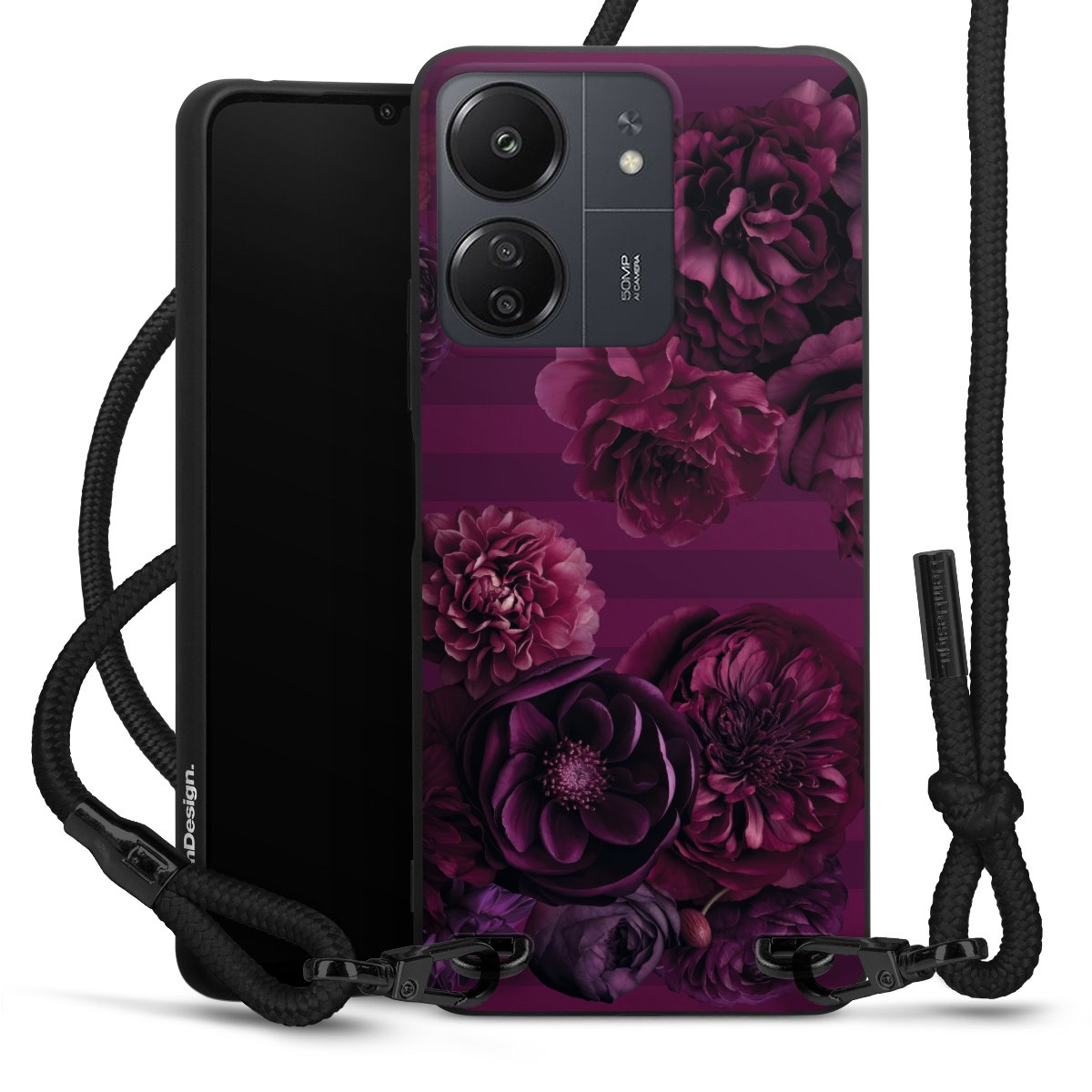 The matt black silicone case is made of flexible TPU (thermoplastic polyurethane) and offers robust protection. The durable, unbreakable material makes the cover flexible and dimensionally stable at the same time. The matte surface makes your design stand out more and is less susceptible to fingerprints and dirt. The stylish trend accessory fits comfortably in the hand and is perfectly complemented by the fabric (polyester) mobile phone strap. The braided fabric strap is approx. 1.70 metres long with a diameter of approx. 0.5 cm. Due to the special knotting technique, the length of the strap can be adjusted by simply pulling it, so that you can adapt it individually to your wishes. The practical case to wear around your neck is available with the fabric strap in black. As a little icing on the cake, we have provided the strap with a chic metal fastener in matt black. The strap is securely fastened to the case with loops made of high-quality genuine leather and press studs. The ends of the fabric strap are covered with metallic end caps and thus protected from fraying.