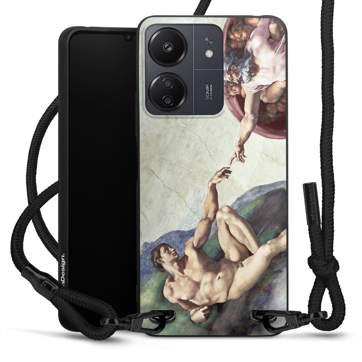 The matt black silicone case is made of flexible TPU (thermoplastic polyurethane) and offers robust protection. The durable, unbreakable material makes the cover flexible and dimensionally stable at the same time. The matte surface makes your design stand out more and is less susceptible to fingerprints and dirt. The stylish trend accessory fits comfortably in the hand and is perfectly complemented by the fabric (polyester) mobile phone strap. The braided fabric strap is approx. 1.70 metres long with a diameter of approx. 0.5 cm. Due to the special knotting technique, the length of the strap can be adjusted by simply pulling it, so that you can adapt it individually to your wishes. The practical case to wear around your neck is available with the fabric strap in black. As a little icing on the cake, we have provided the strap with a chic metal fastener in matt black. The strap is securely fastened to the case with loops made of high-quality genuine leather and press studs. The ends of the fabric strap are covered with metallic end caps and thus protected from fraying.