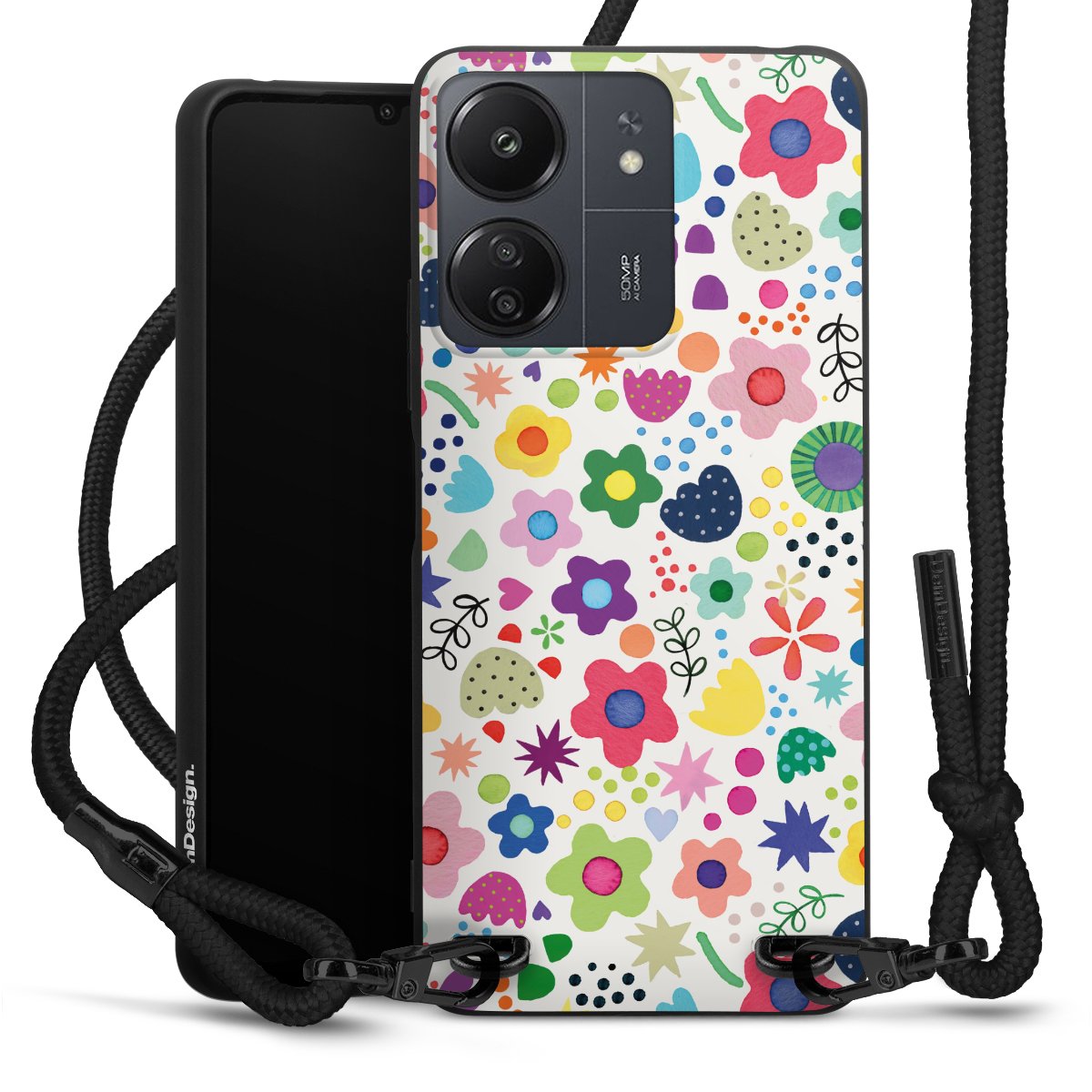 We use the solid direct print process for this phone case, which is why the print area only covers the back and the edge remains unprinted. The case to wear around your neck can be ordered unprinted, fully printed, or partially printed. For your design, either choose one of our exclusive shop motifs or get creative and create your own design, for example with photos and overlays. Design your own personal trend accessory and make an individual statement on the streets!