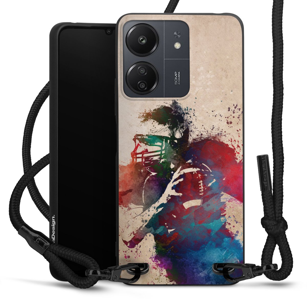 We use the solid direct print process for this phone case, which is why the print area only covers the back and the edge remains unprinted. The case to wear around your neck can be ordered unprinted, fully printed, or partially printed. For your design, either choose one of our exclusive shop motifs or get creative and create your own design, for example with photos and overlays. Design your own personal trend accessory and make an individual statement on the streets!
