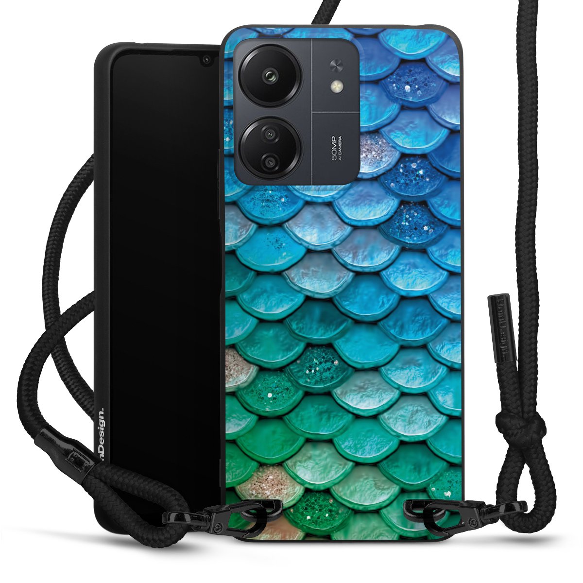 The matt black silicone case is made of flexible TPU (thermoplastic polyurethane) and offers robust protection. The durable, unbreakable material makes the cover flexible and dimensionally stable at the same time. The matte surface makes your design stand out more and is less susceptible to fingerprints and dirt. The stylish trend accessory fits comfortably in the hand and is perfectly complemented by the fabric (polyester) mobile phone strap. The braided fabric strap is approx. 1.70 metres long with a diameter of approx. 0.5 cm. Due to the special knotting technique, the length of the strap can be adjusted by simply pulling it, so that you can adapt it individually to your wishes. The practical case to wear around your neck is available with the fabric strap in black. As a little icing on the cake, we have provided the strap with a chic metal fastener in matt black. The strap is securely fastened to the case with loops made of high-quality genuine leather and press studs. The ends of the fabric strap are covered with metallic end caps and thus protected from fraying.