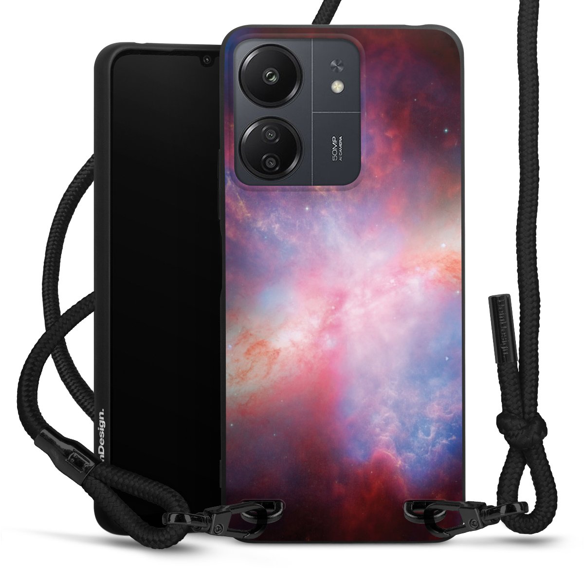 We use the solid direct print process for this phone case, which is why the print area only covers the back and the edge remains unprinted. The case to wear around your neck can be ordered unprinted, fully printed, or partially printed. For your design, either choose one of our exclusive shop motifs or get creative and create your own design, for example with photos and overlays. Design your own personal trend accessory and make an individual statement on the streets!