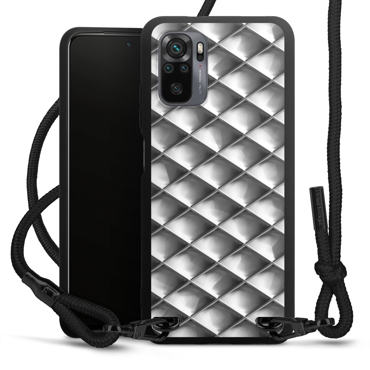 The matt black silicone case is made of flexible TPU (thermoplastic polyurethane) and offers robust protection. The durable, unbreakable material makes the cover flexible and dimensionally stable at the same time. The matte surface makes your design stand out more and is less susceptible to fingerprints and dirt. The stylish trend accessory fits comfortably in the hand and is perfectly complemented by the fabric (polyester) mobile phone strap. The braided fabric strap is approx. 1.70 metres long with a diameter of approx. 0.5 cm. Due to the special knotting technique, the length of the strap can be adjusted by simply pulling it, so that you can adapt it individually to your wishes. The practical case to wear around your neck is available with the fabric strap in black. As a little icing on the cake, we have provided the strap with a chic metal fastener in matt black. The strap is securely fastened to the case with loops made of high-quality genuine leather and press studs. The ends of the fabric strap are covered with metallic end caps and thus protected from fraying.