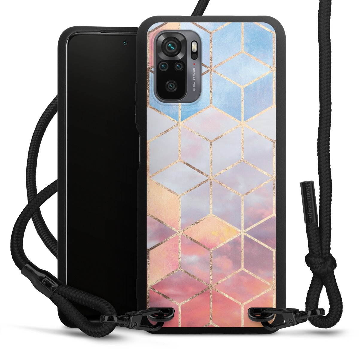 We use the solid direct print process for this phone case, which is why the print area only covers the back and the edge remains unprinted. The case to wear around your neck can be ordered unprinted, fully printed, or partially printed. For your design, either choose one of our exclusive shop motifs or get creative and create your own design, for example with photos and overlays. Design your own personal trend accessory and make an individual statement on the streets!