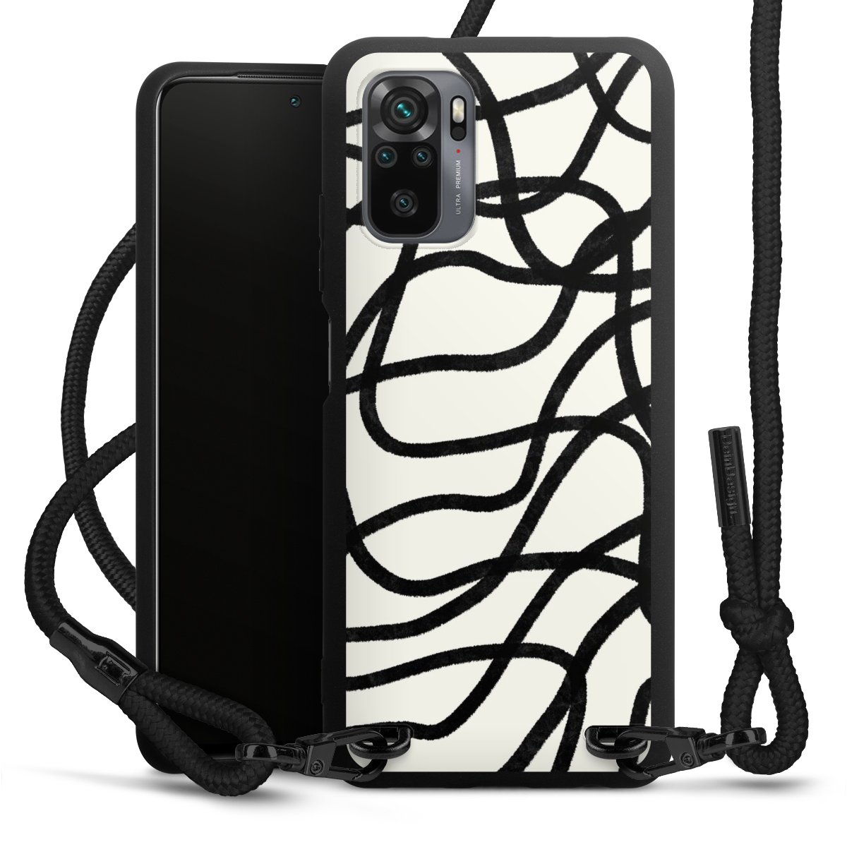 The matt black silicone case is made of flexible TPU (thermoplastic polyurethane) and offers robust protection. The durable, unbreakable material makes the cover flexible and dimensionally stable at the same time. The matte surface makes your design stand out more and is less susceptible to fingerprints and dirt. The stylish trend accessory fits comfortably in the hand and is perfectly complemented by the fabric (polyester) mobile phone strap. The braided fabric strap is approx. 1.70 metres long with a diameter of approx. 0.5 cm. Due to the special knotting technique, the length of the strap can be adjusted by simply pulling it, so that you can adapt it individually to your wishes. The practical case to wear around your neck is available with the fabric strap in black. As a little icing on the cake, we have provided the strap with a chic metal fastener in matt black. The strap is securely fastened to the case with loops made of high-quality genuine leather and press studs. The ends of the fabric strap are covered with metallic end caps and thus protected from fraying.