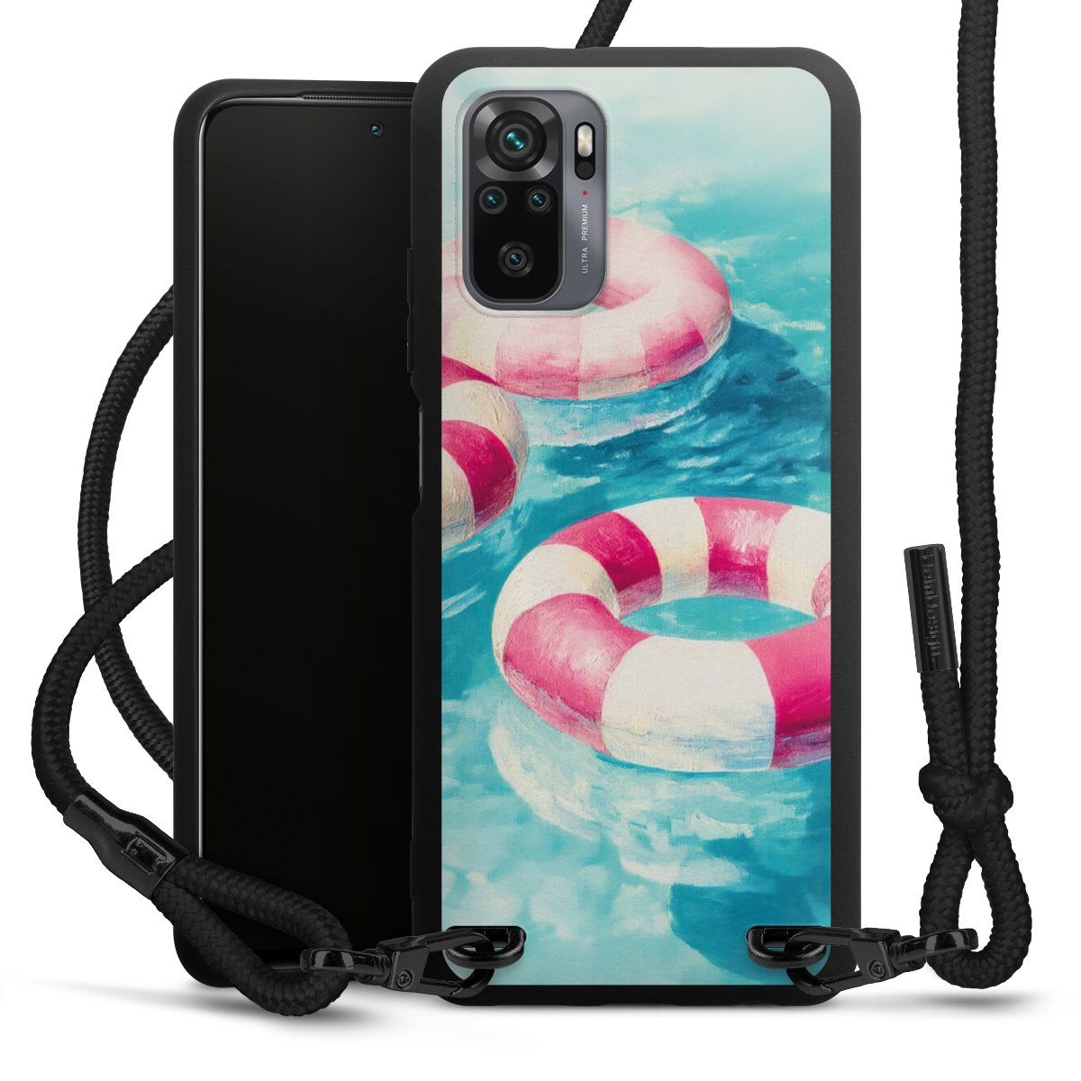 We use the solid direct print process for this phone case, which is why the print area only covers the back and the edge remains unprinted. The case to wear around your neck can be ordered unprinted, fully printed, or partially printed. For your design, either choose one of our exclusive shop motifs or get creative and create your own design, for example with photos and overlays. Design your own personal trend accessory and make an individual statement on the streets!