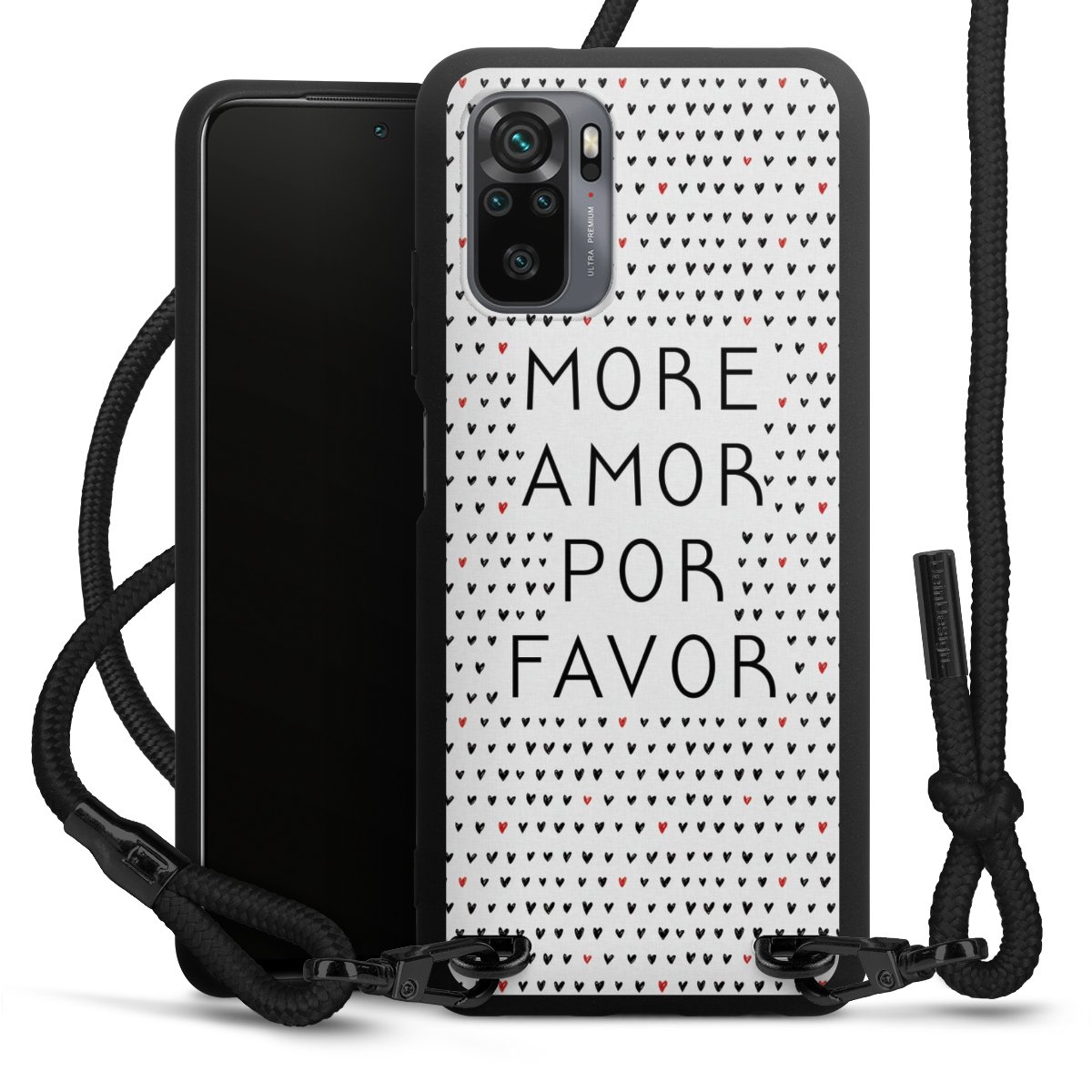 The matt black silicone case is made of flexible TPU (thermoplastic polyurethane) and offers robust protection. The durable, unbreakable material makes the cover flexible and dimensionally stable at the same time. The matte surface makes your design stand out more and is less susceptible to fingerprints and dirt. The stylish trend accessory fits comfortably in the hand and is perfectly complemented by the fabric (polyester) mobile phone strap. The braided fabric strap is approx. 1.70 metres long with a diameter of approx. 0.5 cm. Due to the special knotting technique, the length of the strap can be adjusted by simply pulling it, so that you can adapt it individually to your wishes. The practical case to wear around your neck is available with the fabric strap in black. As a little icing on the cake, we have provided the strap with a chic metal fastener in matt black. The strap is securely fastened to the case with loops made of high-quality genuine leather and press studs. The ends of the fabric strap are covered with metallic end caps and thus protected from fraying.