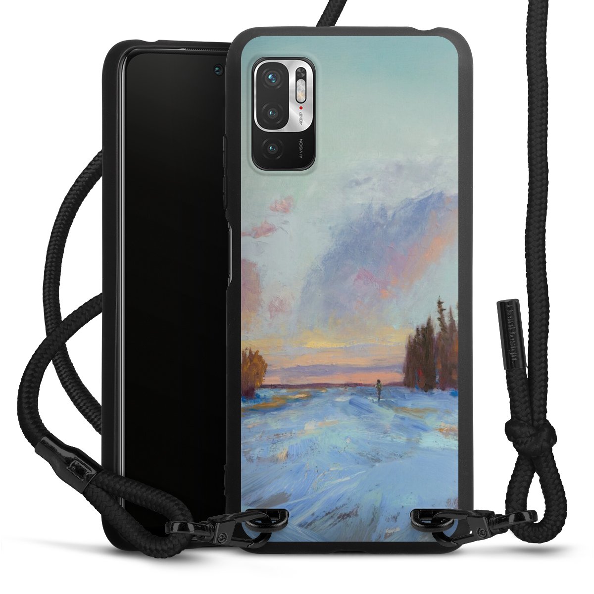 We use the solid direct print process for this phone case, which is why the print area only covers the back and the edge remains unprinted. The case to wear around your neck can be ordered unprinted, fully printed, or partially printed. For your design, either choose one of our exclusive shop motifs or get creative and create your own design, for example with photos and overlays. Design your own personal trend accessory and make an individual statement on the streets!
