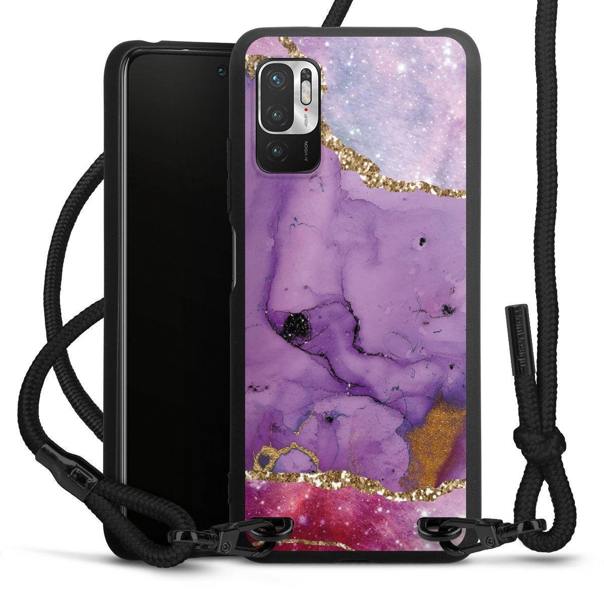 We use the solid direct print process for this phone case, which is why the print area only covers the back and the edge remains unprinted. The case to wear around your neck can be ordered unprinted, fully printed, or partially printed. For your design, either choose one of our exclusive shop motifs or get creative and create your own design, for example with photos and overlays. Design your own personal trend accessory and make an individual statement on the streets!