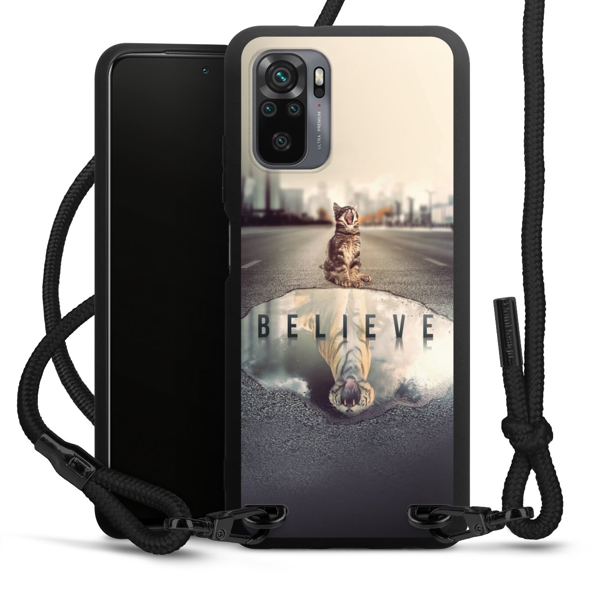 We use the solid direct print process for this phone case, which is why the print area only covers the back and the edge remains unprinted. The case to wear around your neck can be ordered unprinted, fully printed, or partially printed. For your design, either choose one of our exclusive shop motifs or get creative and create your own design, for example with photos and overlays. Design your own personal trend accessory and make an individual statement on the streets!