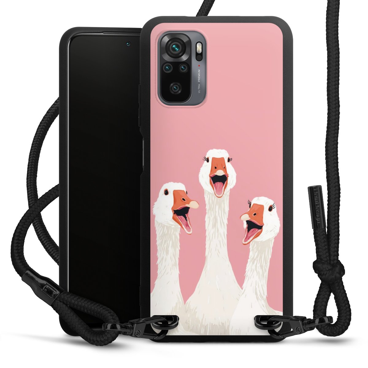 We use the solid direct print process for this phone case, which is why the print area only covers the back and the edge remains unprinted. The case to wear around your neck can be ordered unprinted, fully printed, or partially printed. For your design, either choose one of our exclusive shop motifs or get creative and create your own design, for example with photos and overlays. Design your own personal trend accessory and make an individual statement on the streets!