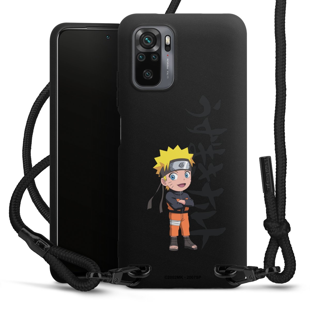 The matt black silicone case is made of flexible TPU (thermoplastic polyurethane) and offers robust protection. The durable, unbreakable material makes the cover flexible and dimensionally stable at the same time. The matte surface makes your design stand out more and is less susceptible to fingerprints and dirt. The stylish trend accessory fits comfortably in the hand and is perfectly complemented by the fabric (polyester) mobile phone strap. The braided fabric strap is approx. 1.70 metres long with a diameter of approx. 0.5 cm. Due to the special knotting technique, the length of the strap can be adjusted by simply pulling it, so that you can adapt it individually to your wishes. The practical case to wear around your neck is available with the fabric strap in black. As a little icing on the cake, we have provided the strap with a chic metal fastener in matt black. The strap is securely fastened to the case with loops made of high-quality genuine leather and press studs. The ends of the fabric strap are covered with metallic end caps and thus protected from fraying.