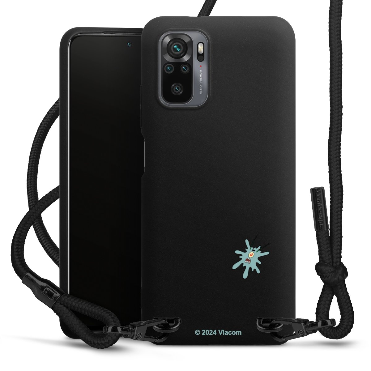 The matt black silicone case is made of flexible TPU (thermoplastic polyurethane) and offers robust protection. The durable, unbreakable material makes the cover flexible and dimensionally stable at the same time. The matte surface makes your design stand out more and is less susceptible to fingerprints and dirt. The stylish trend accessory fits comfortably in the hand and is perfectly complemented by the fabric (polyester) mobile phone strap. The braided fabric strap is approx. 1.70 metres long with a diameter of approx. 0.5 cm. Due to the special knotting technique, the length of the strap can be adjusted by simply pulling it, so that you can adapt it individually to your wishes. The practical case to wear around your neck is available with the fabric strap in black. As a little icing on the cake, we have provided the strap with a chic metal fastener in matt black. The strap is securely fastened to the case with loops made of high-quality genuine leather and press studs. The ends of the fabric strap are covered with metallic end caps and thus protected from fraying.