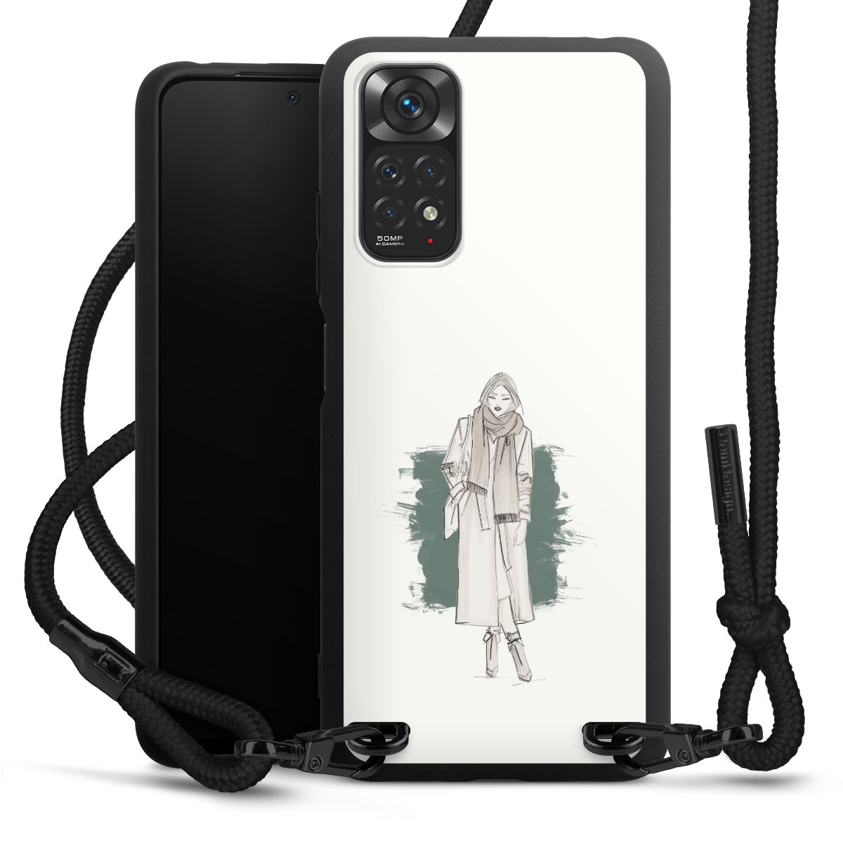 The matt black silicone case is made of flexible TPU (thermoplastic polyurethane) and offers robust protection. The durable, unbreakable material makes the cover flexible and dimensionally stable at the same time. The matte surface makes your design stand out more and is less susceptible to fingerprints and dirt. The stylish trend accessory fits comfortably in the hand and is perfectly complemented by the fabric (polyester) mobile phone strap. The braided fabric strap is approx. 1.70 metres long with a diameter of approx. 0.5 cm. Due to the special knotting technique, the length of the strap can be adjusted by simply pulling it, so that you can adapt it individually to your wishes. The practical case to wear around your neck is available with the fabric strap in black. As a little icing on the cake, we have provided the strap with a chic metal fastener in matt black. The strap is securely fastened to the case with loops made of high-quality genuine leather and press studs. The ends of the fabric strap are covered with metallic end caps and thus protected from fraying.