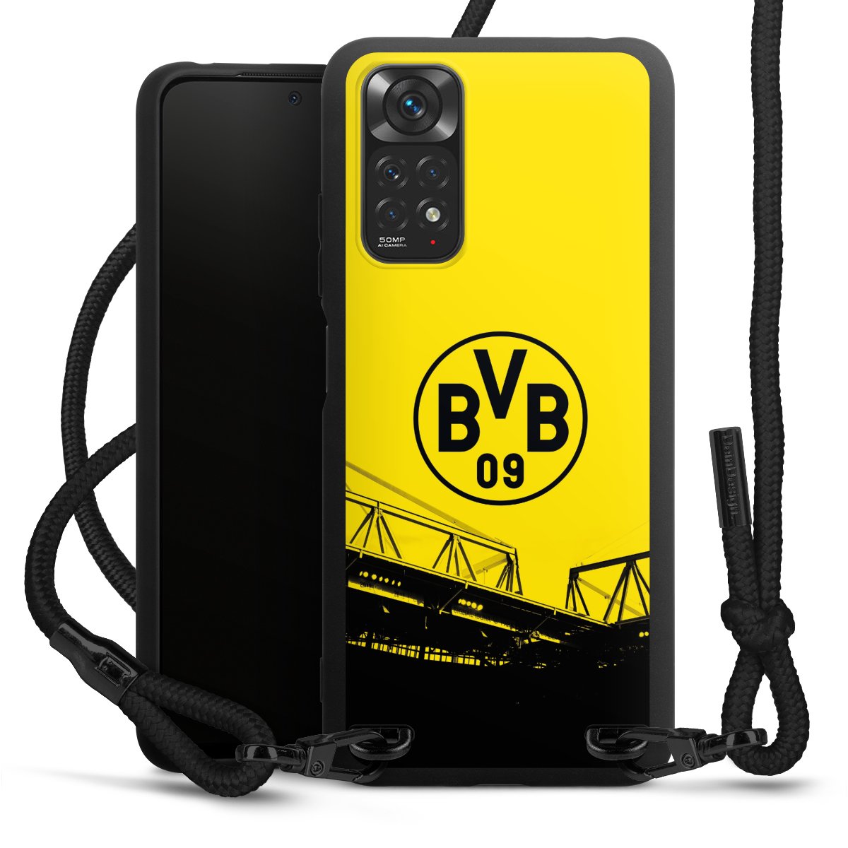 The matt black silicone case is made of flexible TPU (thermoplastic polyurethane) and offers robust protection. The durable, unbreakable material makes the cover flexible and dimensionally stable at the same time. The matte surface makes your design stand out more and is less susceptible to fingerprints and dirt. The stylish trend accessory fits comfortably in the hand and is perfectly complemented by the fabric (polyester) mobile phone strap. The braided fabric strap is approx. 1.70 metres long with a diameter of approx. 0.5 cm. Due to the special knotting technique, the length of the strap can be adjusted by simply pulling it, so that you can adapt it individually to your wishes. The practical case to wear around your neck is available with the fabric strap in black. As a little icing on the cake, we have provided the strap with a chic metal fastener in matt black. The strap is securely fastened to the case with loops made of high-quality genuine leather and press studs. The ends of the fabric strap are covered with metallic end caps and thus protected from fraying.