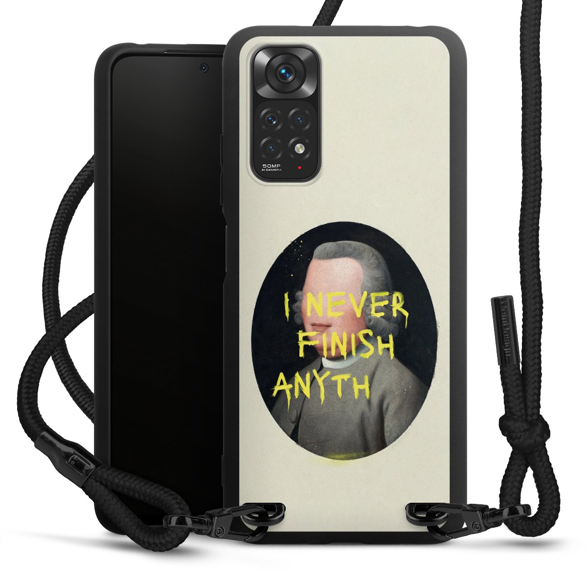 The matt black silicone case is made of flexible TPU (thermoplastic polyurethane) and offers robust protection. The durable, unbreakable material makes the cover flexible and dimensionally stable at the same time. The matte surface makes your design stand out more and is less susceptible to fingerprints and dirt. The stylish trend accessory fits comfortably in the hand and is perfectly complemented by the fabric (polyester) mobile phone strap. The braided fabric strap is approx. 1.70 metres long with a diameter of approx. 0.5 cm. Due to the special knotting technique, the length of the strap can be adjusted by simply pulling it, so that you can adapt it individually to your wishes. The practical case to wear around your neck is available with the fabric strap in black. As a little icing on the cake, we have provided the strap with a chic metal fastener in matt black. The strap is securely fastened to the case with loops made of high-quality genuine leather and press studs. The ends of the fabric strap are covered with metallic end caps and thus protected from fraying.