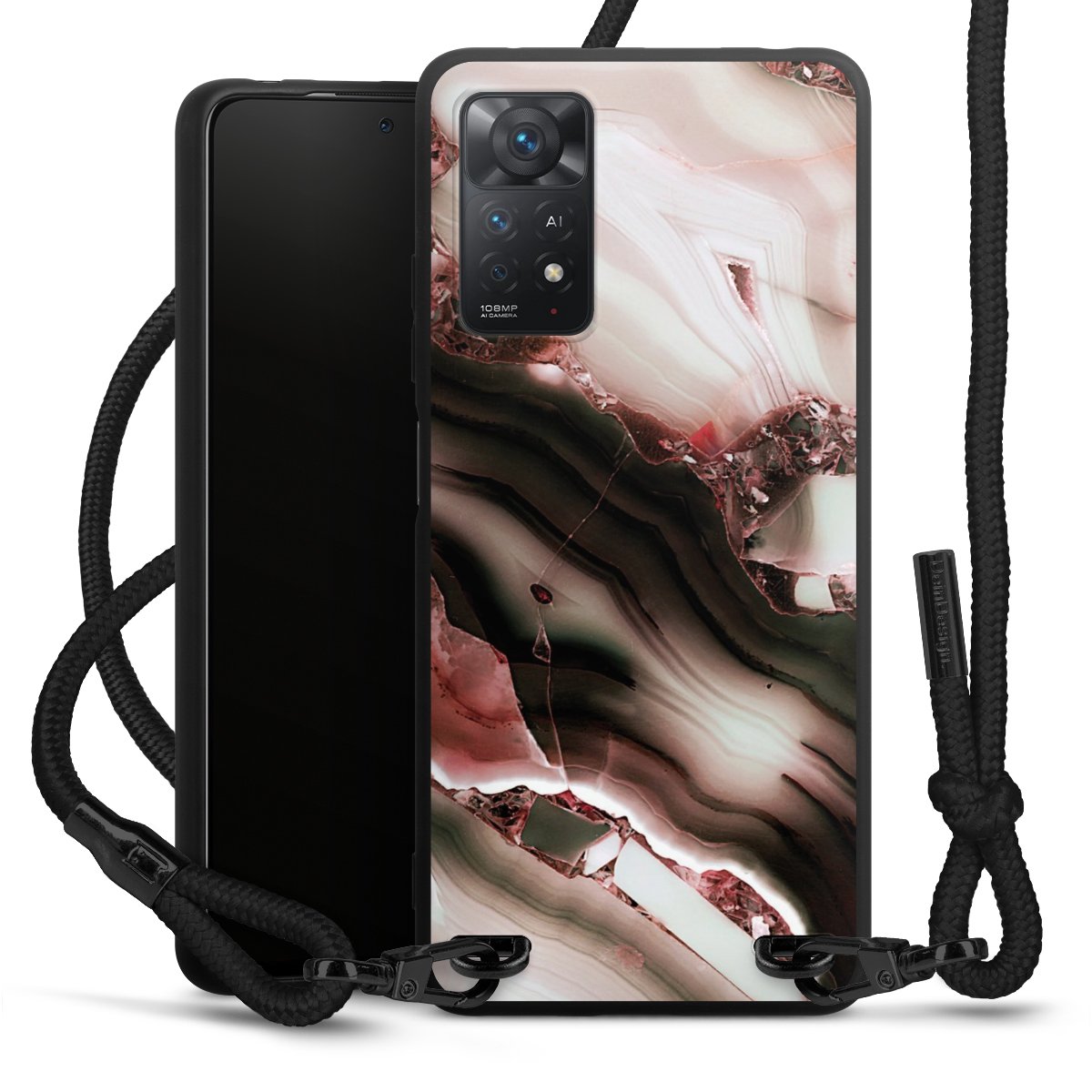 We use the solid direct print process for this phone case, which is why the print area only covers the back and the edge remains unprinted. The case to wear around your neck can be ordered unprinted, fully printed, or partially printed. For your design, either choose one of our exclusive shop motifs or get creative and create your own design, for example with photos and overlays. Design your own personal trend accessory and make an individual statement on the streets!
