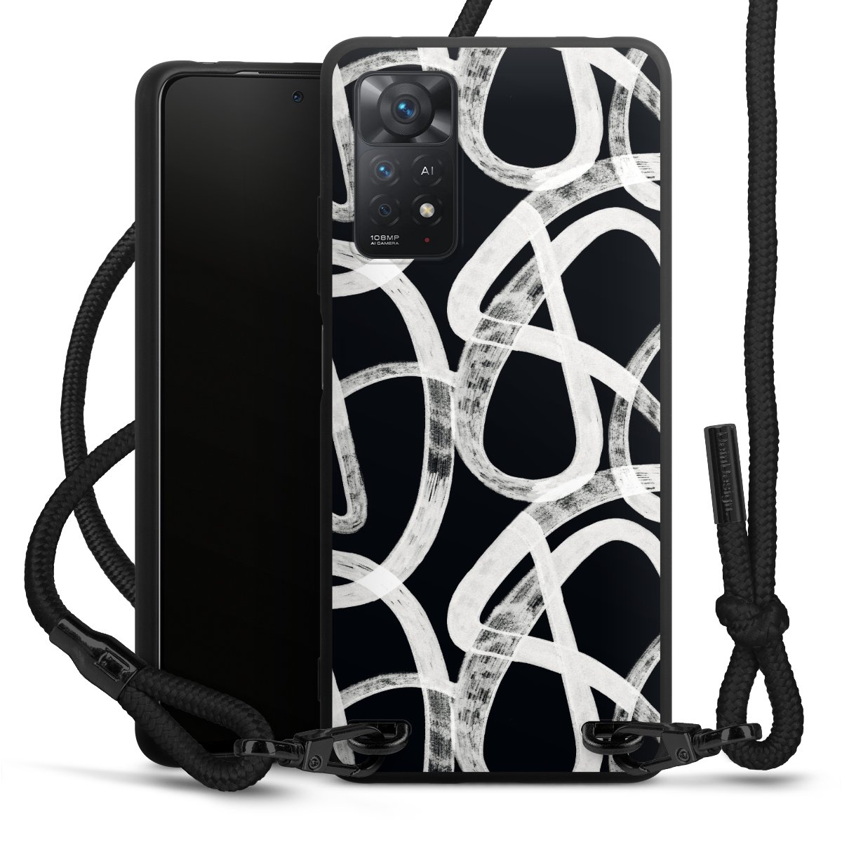 The matt black silicone case is made of flexible TPU (thermoplastic polyurethane) and offers robust protection. The durable, unbreakable material makes the cover flexible and dimensionally stable at the same time. The matte surface makes your design stand out more and is less susceptible to fingerprints and dirt. The stylish trend accessory fits comfortably in the hand and is perfectly complemented by the fabric (polyester) mobile phone strap. The braided fabric strap is approx. 1.70 metres long with a diameter of approx. 0.5 cm. Due to the special knotting technique, the length of the strap can be adjusted by simply pulling it, so that you can adapt it individually to your wishes. The practical case to wear around your neck is available with the fabric strap in black. As a little icing on the cake, we have provided the strap with a chic metal fastener in matt black. The strap is securely fastened to the case with loops made of high-quality genuine leather and press studs. The ends of the fabric strap are covered with metallic end caps and thus protected from fraying.