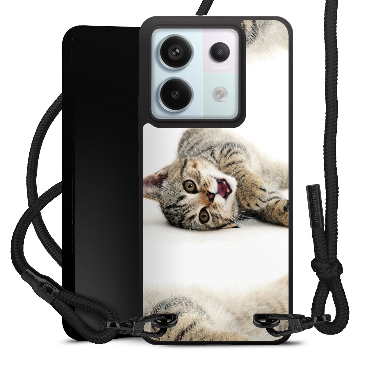 The matt black silicone case is made of flexible TPU (thermoplastic polyurethane) and offers robust protection. The durable, unbreakable material makes the cover flexible and dimensionally stable at the same time. The matte surface makes your design stand out more and is less susceptible to fingerprints and dirt. The stylish trend accessory fits comfortably in the hand and is perfectly complemented by the fabric (polyester) mobile phone strap. The braided fabric strap is approx. 1.70 metres long with a diameter of approx. 0.5 cm. Due to the special knotting technique, the length of the strap can be adjusted by simply pulling it, so that you can adapt it individually to your wishes. The practical case to wear around your neck is available with the fabric strap in black. As a little icing on the cake, we have provided the strap with a chic metal fastener in matt black. The strap is securely fastened to the case with loops made of high-quality genuine leather and press studs. The ends of the fabric strap are covered with metallic end caps and thus protected from fraying.