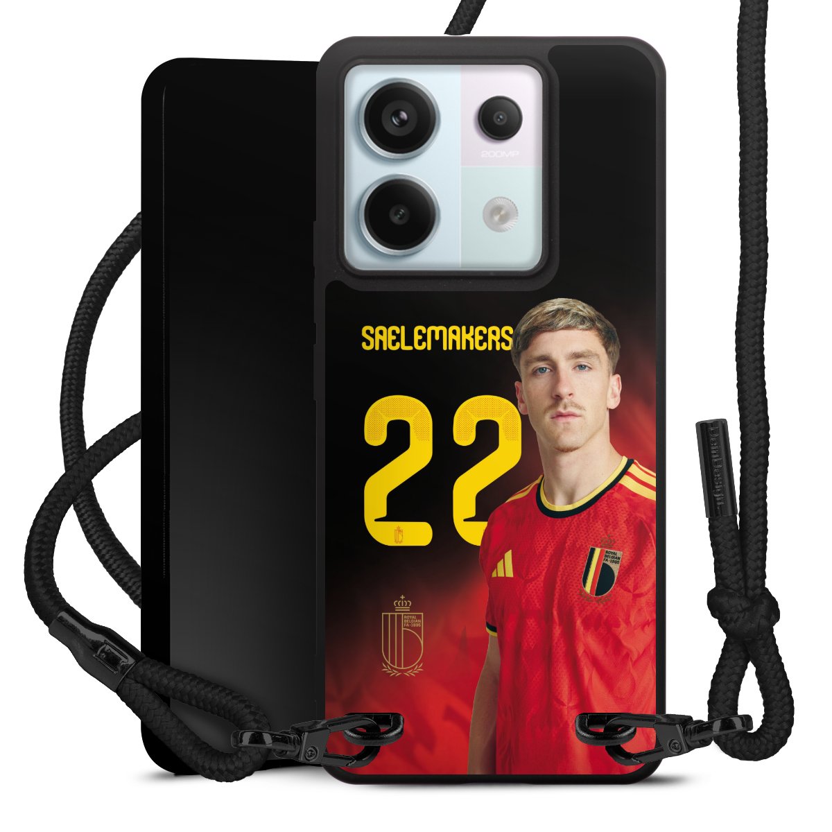 The matt black silicone case is made of flexible TPU (thermoplastic polyurethane) and offers robust protection. The durable, unbreakable material makes the cover flexible and dimensionally stable at the same time. The matte surface makes your design stand out more and is less susceptible to fingerprints and dirt. The stylish trend accessory fits comfortably in the hand and is perfectly complemented by the fabric (polyester) mobile phone strap. The braided fabric strap is approx. 1.70 metres long with a diameter of approx. 0.5 cm. Due to the special knotting technique, the length of the strap can be adjusted by simply pulling it, so that you can adapt it individually to your wishes. The practical case to wear around your neck is available with the fabric strap in black. As a little icing on the cake, we have provided the strap with a chic metal fastener in matt black. The strap is securely fastened to the case with loops made of high-quality genuine leather and press studs. The ends of the fabric strap are covered with metallic end caps and thus protected from fraying.