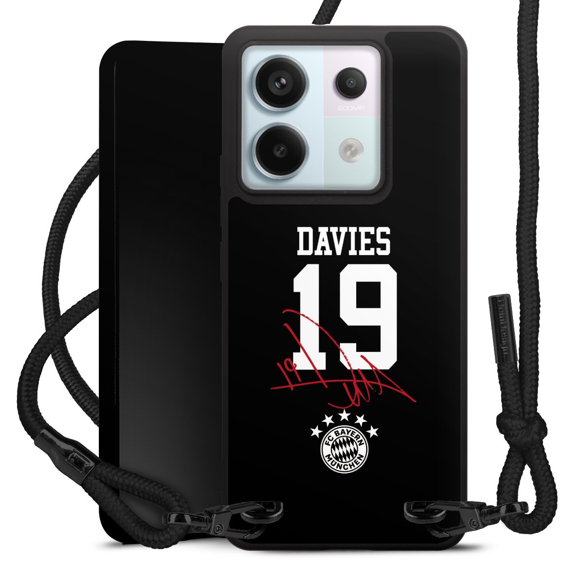The matt black silicone case is made of flexible TPU (thermoplastic polyurethane) and offers robust protection. The durable, unbreakable material makes the cover flexible and dimensionally stable at the same time. The matte surface makes your design stand out more and is less susceptible to fingerprints and dirt. The stylish trend accessory fits comfortably in the hand and is perfectly complemented by the fabric (polyester) mobile phone strap. The braided fabric strap is approx. 1.70 metres long with a diameter of approx. 0.5 cm. Due to the special knotting technique, the length of the strap can be adjusted by simply pulling it, so that you can adapt it individually to your wishes. The practical case to wear around your neck is available with the fabric strap in black. As a little icing on the cake, we have provided the strap with a chic metal fastener in matt black. The strap is securely fastened to the case with loops made of high-quality genuine leather and press studs. The ends of the fabric strap are covered with metallic end caps and thus protected from fraying.