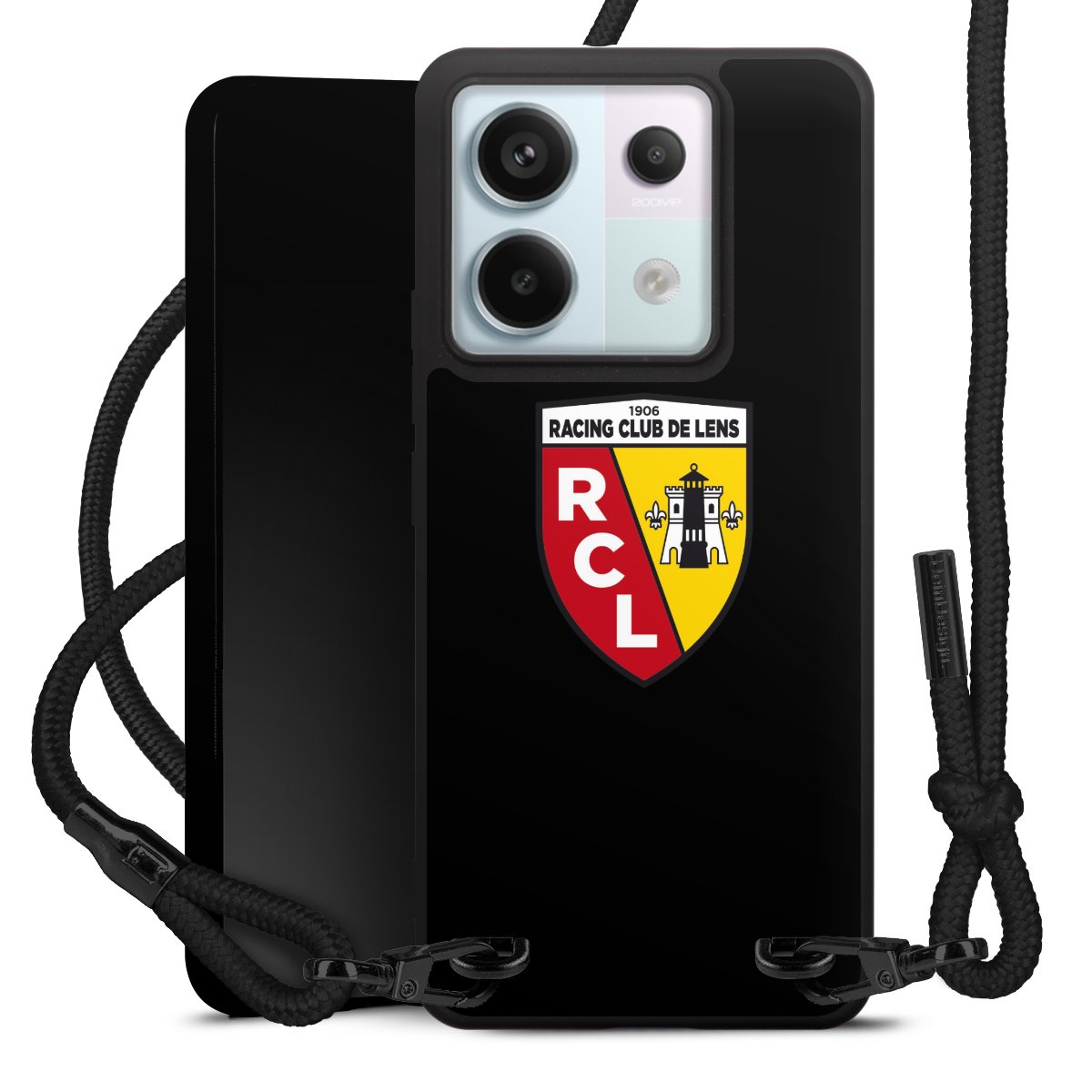 The matt black silicone case is made of flexible TPU (thermoplastic polyurethane) and offers robust protection. The durable, unbreakable material makes the cover flexible and dimensionally stable at the same time. The matte surface makes your design stand out more and is less susceptible to fingerprints and dirt. The stylish trend accessory fits comfortably in the hand and is perfectly complemented by the fabric (polyester) mobile phone strap. The braided fabric strap is approx. 1.70 metres long with a diameter of approx. 0.5 cm. Due to the special knotting technique, the length of the strap can be adjusted by simply pulling it, so that you can adapt it individually to your wishes. The practical case to wear around your neck is available with the fabric strap in black. As a little icing on the cake, we have provided the strap with a chic metal fastener in matt black. The strap is securely fastened to the case with loops made of high-quality genuine leather and press studs. The ends of the fabric strap are covered with metallic end caps and thus protected from fraying.