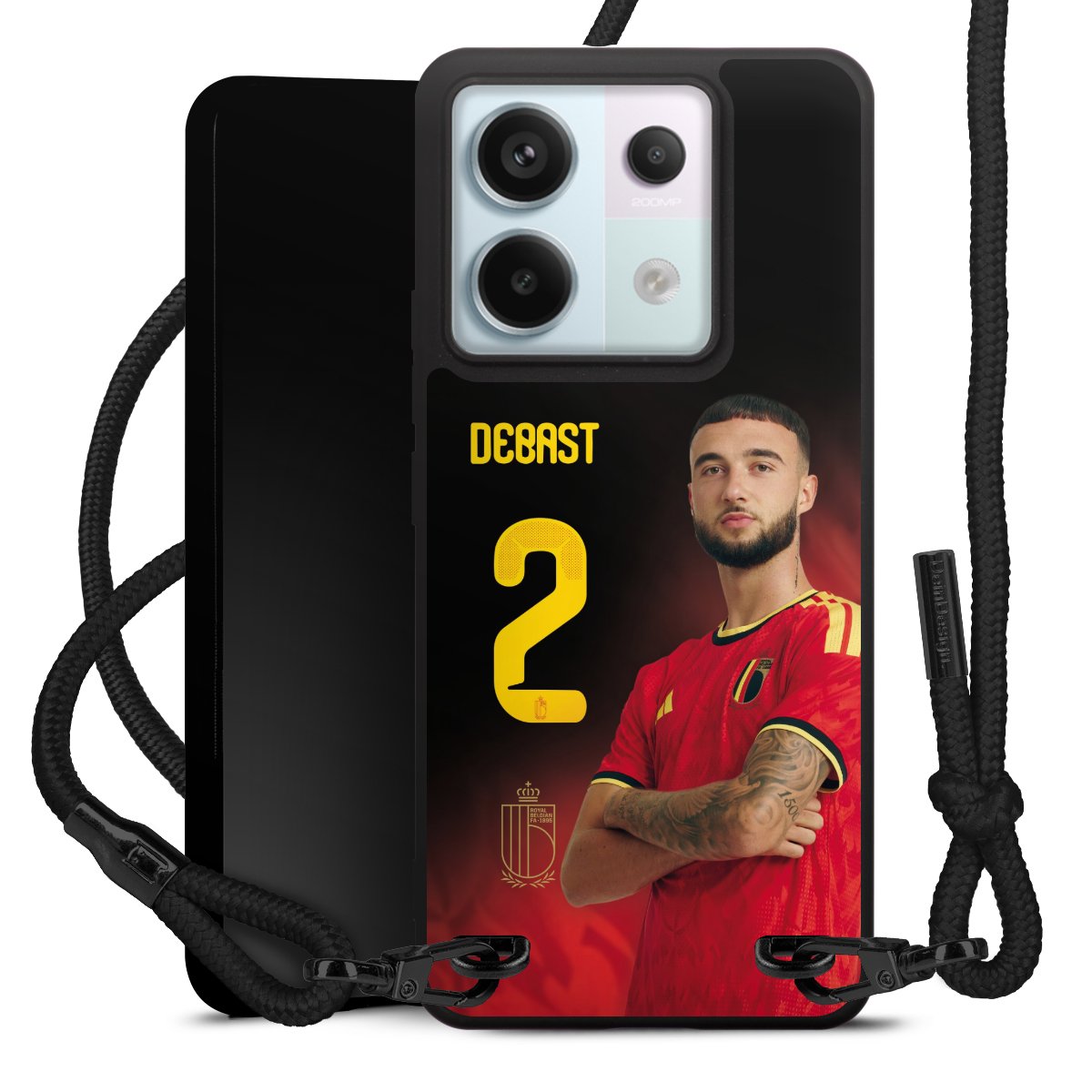 The matt black silicone case is made of flexible TPU (thermoplastic polyurethane) and offers robust protection. The durable, unbreakable material makes the cover flexible and dimensionally stable at the same time. The matte surface makes your design stand out more and is less susceptible to fingerprints and dirt. The stylish trend accessory fits comfortably in the hand and is perfectly complemented by the fabric (polyester) mobile phone strap. The braided fabric strap is approx. 1.70 metres long with a diameter of approx. 0.5 cm. Due to the special knotting technique, the length of the strap can be adjusted by simply pulling it, so that you can adapt it individually to your wishes. The practical case to wear around your neck is available with the fabric strap in black. As a little icing on the cake, we have provided the strap with a chic metal fastener in matt black. The strap is securely fastened to the case with loops made of high-quality genuine leather and press studs. The ends of the fabric strap are covered with metallic end caps and thus protected from fraying.