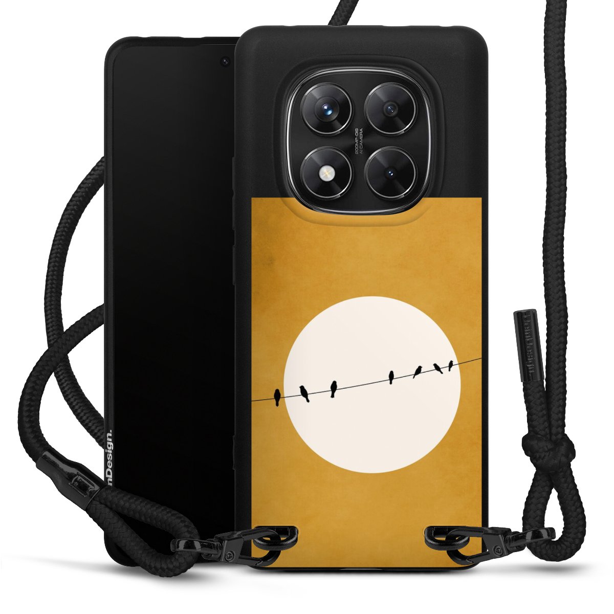 The matt black silicone case is made of flexible TPU (thermoplastic polyurethane) and offers robust protection. The durable, unbreakable material makes the cover flexible and dimensionally stable at the same time. The matte surface makes your design stand out more and is less susceptible to fingerprints and dirt. The stylish trend accessory fits comfortably in the hand and is perfectly complemented by the fabric (polyester) mobile phone strap. The braided fabric strap is approx. 1.70 metres long with a diameter of approx. 0.5 cm. Due to the special knotting technique, the length of the strap can be adjusted by simply pulling it, so that you can adapt it individually to your wishes. The practical case to wear around your neck is available with the fabric strap in black. As a little icing on the cake, we have provided the strap with a chic metal fastener in matt black. The strap is securely fastened to the case with loops made of high-quality genuine leather and press studs. The ends of the fabric strap are covered with metallic end caps and thus protected from fraying.