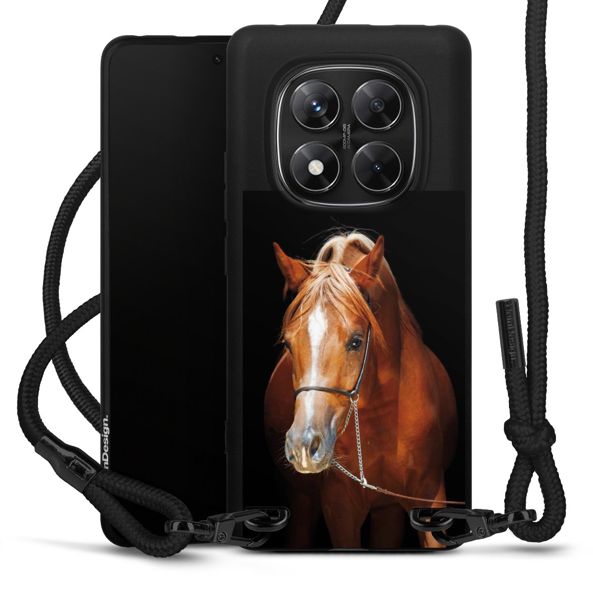 The matt black silicone case is made of flexible TPU (thermoplastic polyurethane) and offers robust protection. The durable, unbreakable material makes the cover flexible and dimensionally stable at the same time. The matte surface makes your design stand out more and is less susceptible to fingerprints and dirt. The stylish trend accessory fits comfortably in the hand and is perfectly complemented by the fabric (polyester) mobile phone strap. The braided fabric strap is approx. 1.70 metres long with a diameter of approx. 0.5 cm. Due to the special knotting technique, the length of the strap can be adjusted by simply pulling it, so that you can adapt it individually to your wishes. The practical case to wear around your neck is available with the fabric strap in black. As a little icing on the cake, we have provided the strap with a chic metal fastener in matt black. The strap is securely fastened to the case with loops made of high-quality genuine leather and press studs. The ends of the fabric strap are covered with metallic end caps and thus protected from fraying.