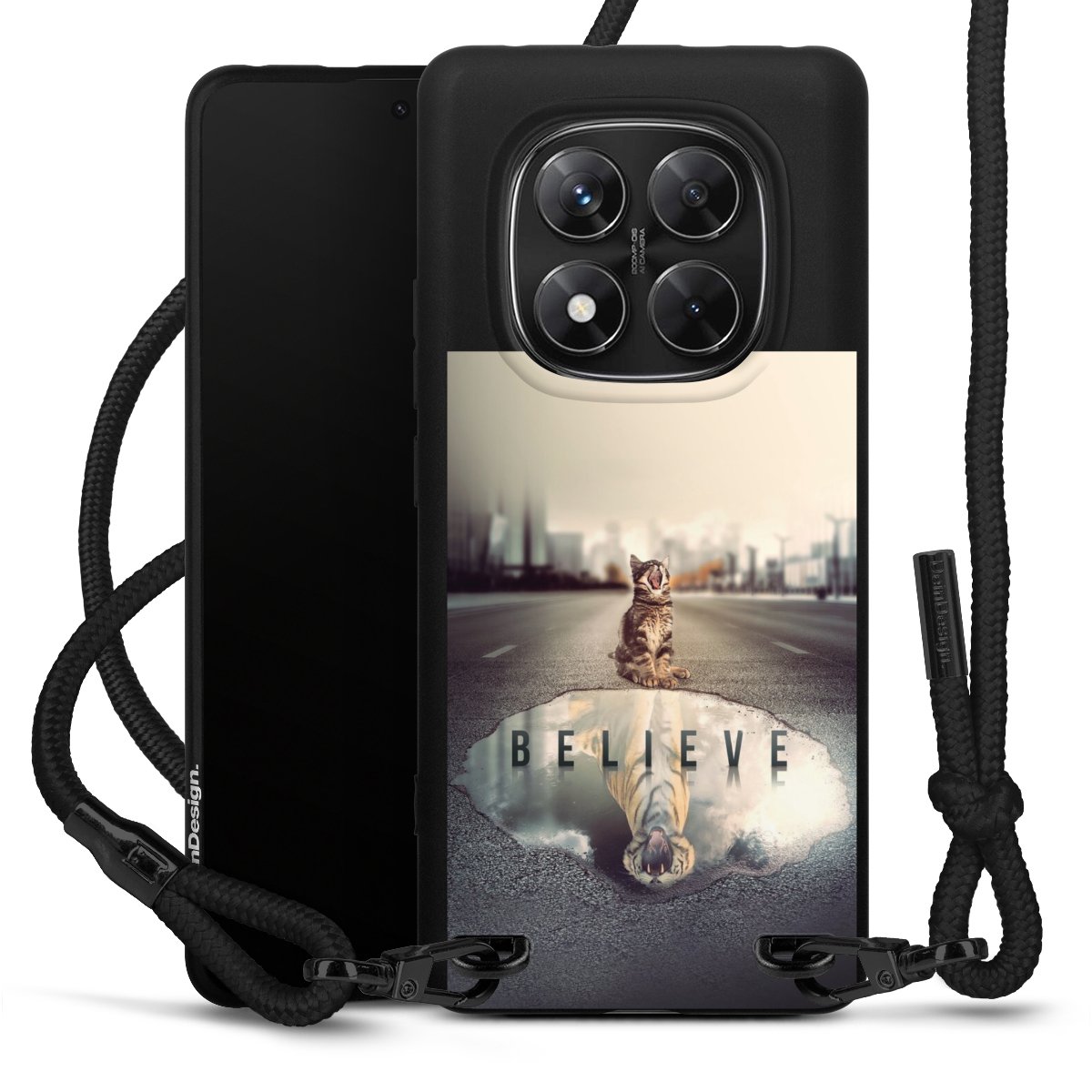 We use the solid direct print process for this phone case, which is why the print area only covers the back and the edge remains unprinted. The case to wear around your neck can be ordered unprinted, fully printed, or partially printed. For your design, either choose one of our exclusive shop motifs or get creative and create your own design, for example with photos and overlays. Design your own personal trend accessory and make an individual statement on the streets!