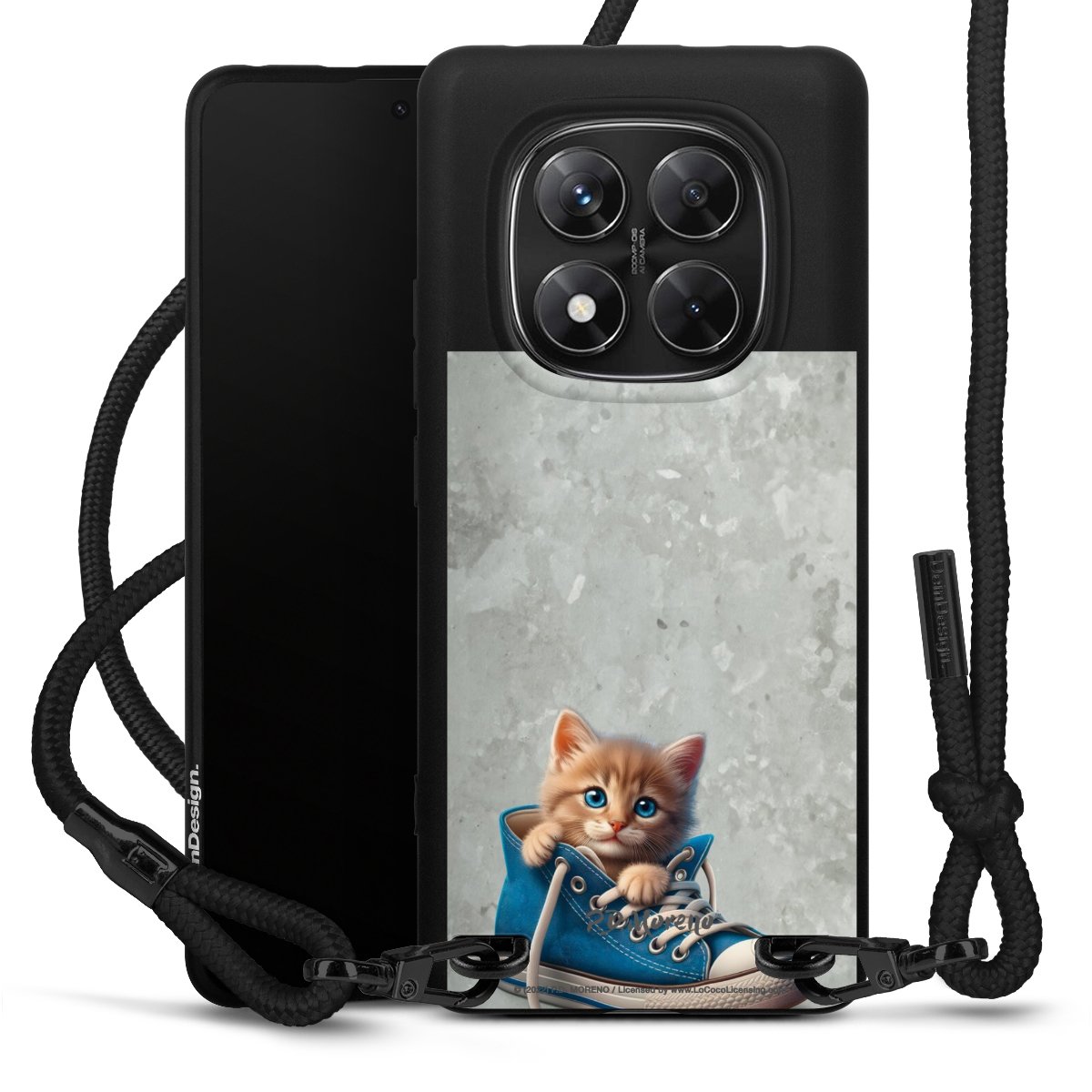 The matt black silicone case is made of flexible TPU (thermoplastic polyurethane) and offers robust protection. The durable, unbreakable material makes the cover flexible and dimensionally stable at the same time. The matte surface makes your design stand out more and is less susceptible to fingerprints and dirt. The stylish trend accessory fits comfortably in the hand and is perfectly complemented by the fabric (polyester) mobile phone strap. The braided fabric strap is approx. 1.70 metres long with a diameter of approx. 0.5 cm. Due to the special knotting technique, the length of the strap can be adjusted by simply pulling it, so that you can adapt it individually to your wishes. The practical case to wear around your neck is available with the fabric strap in black. As a little icing on the cake, we have provided the strap with a chic metal fastener in matt black. The strap is securely fastened to the case with loops made of high-quality genuine leather and press studs. The ends of the fabric strap are covered with metallic end caps and thus protected from fraying.