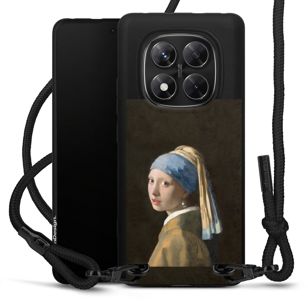 The matt black silicone case is made of flexible TPU (thermoplastic polyurethane) and offers robust protection. The durable, unbreakable material makes the cover flexible and dimensionally stable at the same time. The matte surface makes your design stand out more and is less susceptible to fingerprints and dirt. The stylish trend accessory fits comfortably in the hand and is perfectly complemented by the fabric (polyester) mobile phone strap. The braided fabric strap is approx. 1.70 metres long with a diameter of approx. 0.5 cm. Due to the special knotting technique, the length of the strap can be adjusted by simply pulling it, so that you can adapt it individually to your wishes. The practical case to wear around your neck is available with the fabric strap in black. As a little icing on the cake, we have provided the strap with a chic metal fastener in matt black. The strap is securely fastened to the case with loops made of high-quality genuine leather and press studs. The ends of the fabric strap are covered with metallic end caps and thus protected from fraying.