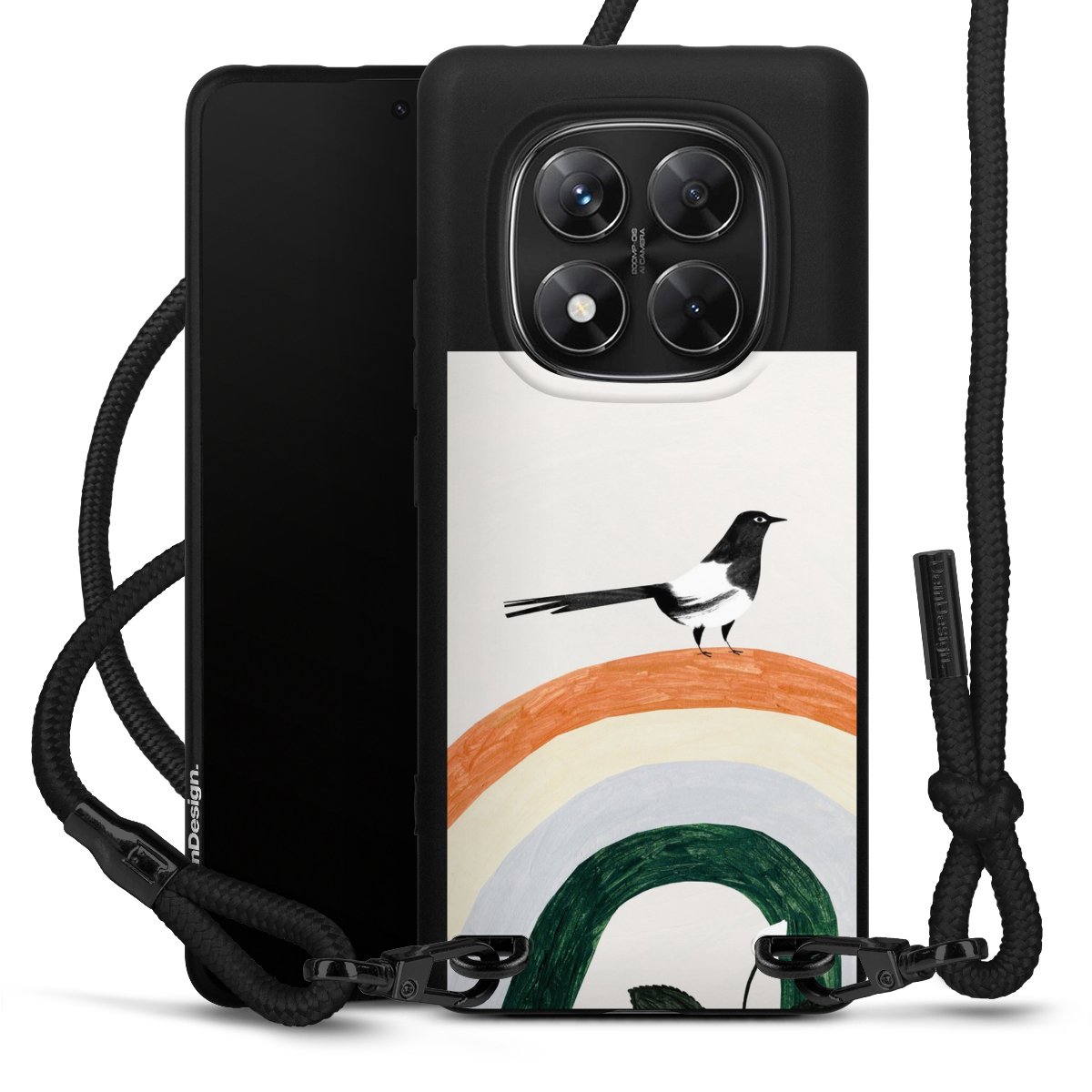 The matt black silicone case is made of flexible TPU (thermoplastic polyurethane) and offers robust protection. The durable, unbreakable material makes the cover flexible and dimensionally stable at the same time. The matte surface makes your design stand out more and is less susceptible to fingerprints and dirt. The stylish trend accessory fits comfortably in the hand and is perfectly complemented by the fabric (polyester) mobile phone strap. The braided fabric strap is approx. 1.70 metres long with a diameter of approx. 0.5 cm. Due to the special knotting technique, the length of the strap can be adjusted by simply pulling it, so that you can adapt it individually to your wishes. The practical case to wear around your neck is available with the fabric strap in black. As a little icing on the cake, we have provided the strap with a chic metal fastener in matt black. The strap is securely fastened to the case with loops made of high-quality genuine leather and press studs. The ends of the fabric strap are covered with metallic end caps and thus protected from fraying.