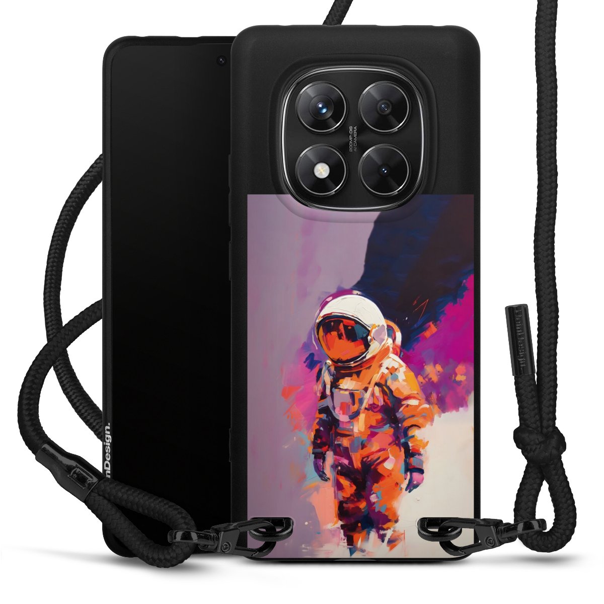 We use the solid direct print process for this phone case, which is why the print area only covers the back and the edge remains unprinted. The case to wear around your neck can be ordered unprinted, fully printed, or partially printed. For your design, either choose one of our exclusive shop motifs or get creative and create your own design, for example with photos and overlays. Design your own personal trend accessory and make an individual statement on the streets!
