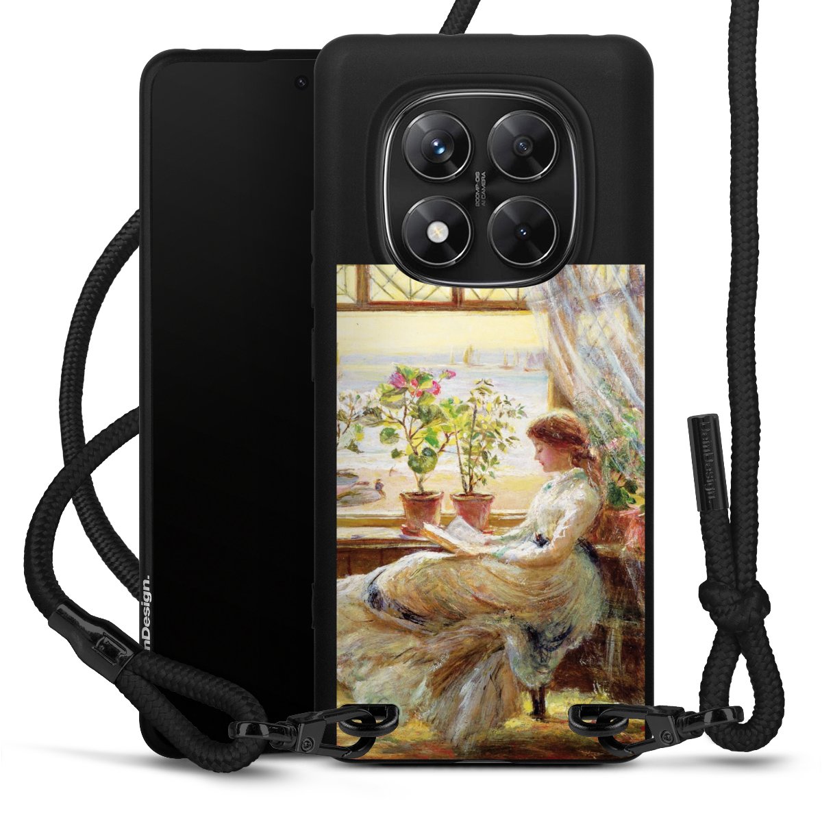 The matt black silicone case is made of flexible TPU (thermoplastic polyurethane) and offers robust protection. The durable, unbreakable material makes the cover flexible and dimensionally stable at the same time. The matte surface makes your design stand out more and is less susceptible to fingerprints and dirt. The stylish trend accessory fits comfortably in the hand and is perfectly complemented by the fabric (polyester) mobile phone strap. The braided fabric strap is approx. 1.70 metres long with a diameter of approx. 0.5 cm. Due to the special knotting technique, the length of the strap can be adjusted by simply pulling it, so that you can adapt it individually to your wishes. The practical case to wear around your neck is available with the fabric strap in black. As a little icing on the cake, we have provided the strap with a chic metal fastener in matt black. The strap is securely fastened to the case with loops made of high-quality genuine leather and press studs. The ends of the fabric strap are covered with metallic end caps and thus protected from fraying.