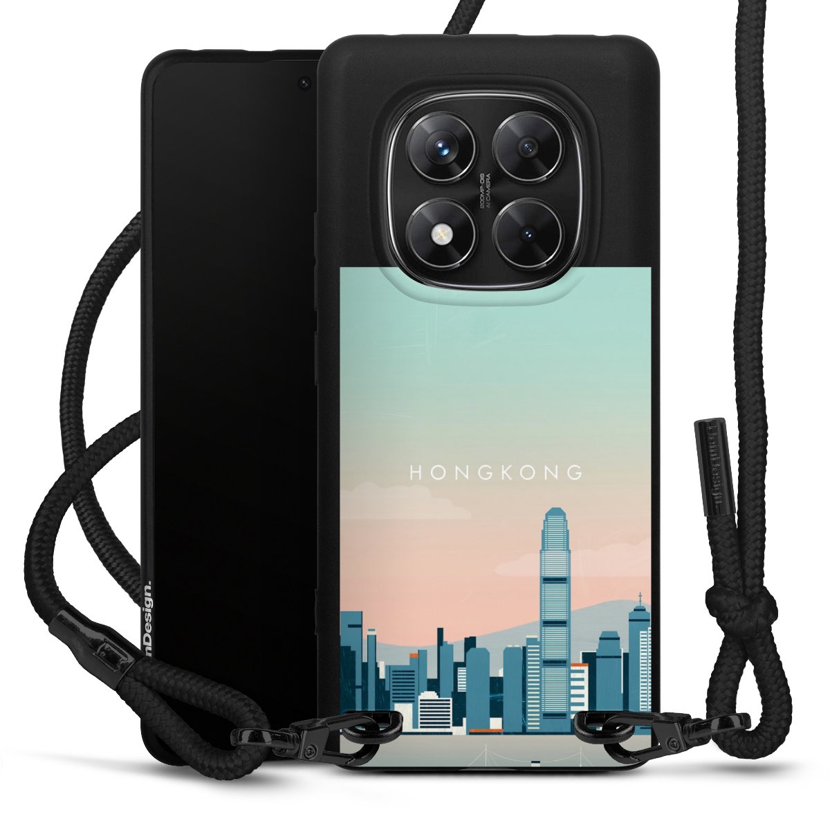 We use the solid direct print process for this phone case, which is why the print area only covers the back and the edge remains unprinted. The case to wear around your neck can be ordered unprinted, fully printed, or partially printed. For your design, either choose one of our exclusive shop motifs or get creative and create your own design, for example with photos and overlays. Design your own personal trend accessory and make an individual statement on the streets!
