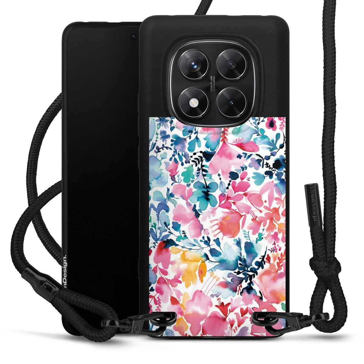 We use the solid direct print process for this phone case, which is why the print area only covers the back and the edge remains unprinted. The case to wear around your neck can be ordered unprinted, fully printed, or partially printed. For your design, either choose one of our exclusive shop motifs or get creative and create your own design, for example with photos and overlays. Design your own personal trend accessory and make an individual statement on the streets!