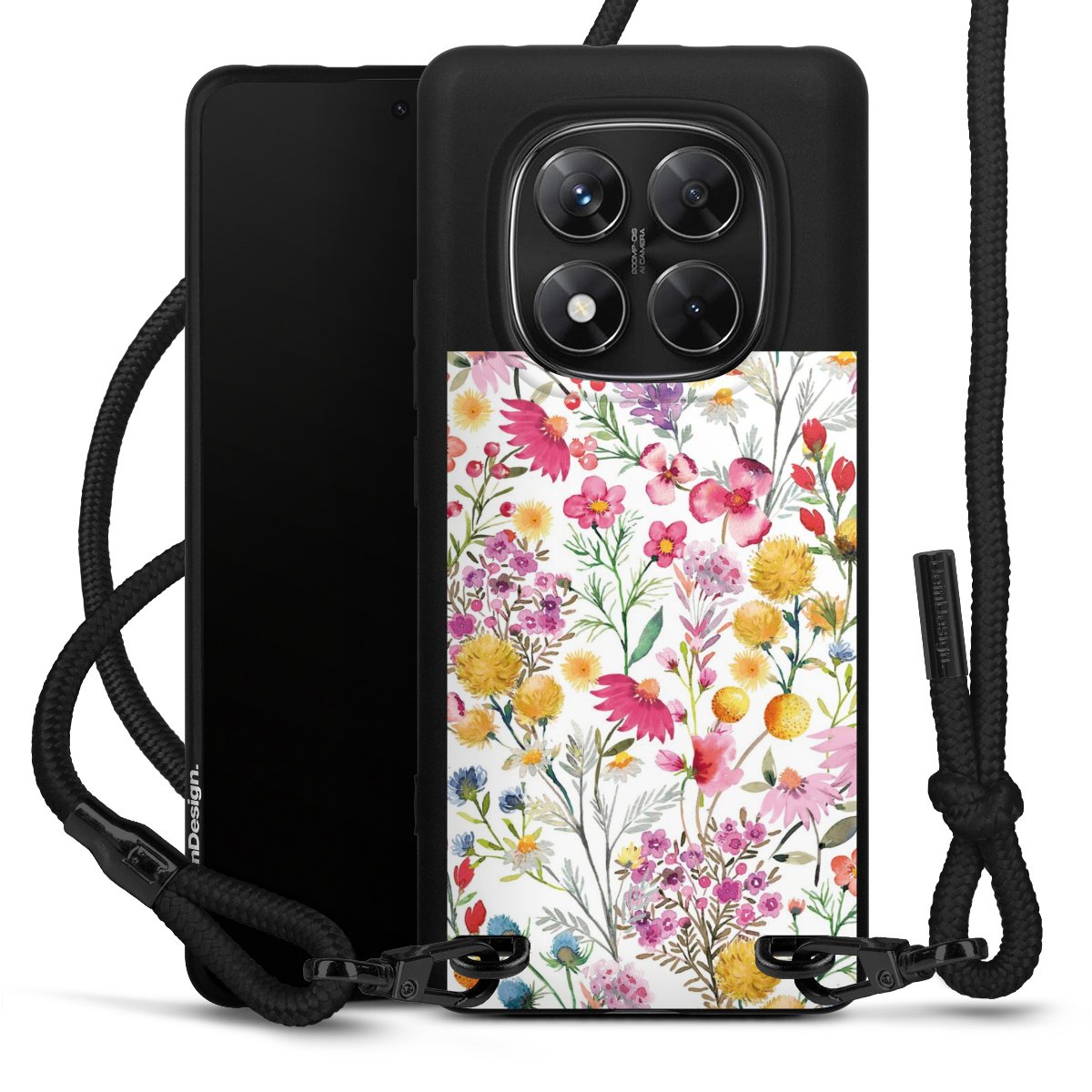 The matt black silicone case is made of flexible TPU (thermoplastic polyurethane) and offers robust protection. The durable, unbreakable material makes the cover flexible and dimensionally stable at the same time. The matte surface makes your design stand out more and is less susceptible to fingerprints and dirt. The stylish trend accessory fits comfortably in the hand and is perfectly complemented by the fabric (polyester) mobile phone strap. The braided fabric strap is approx. 1.70 metres long with a diameter of approx. 0.5 cm. Due to the special knotting technique, the length of the strap can be adjusted by simply pulling it, so that you can adapt it individually to your wishes. The practical case to wear around your neck is available with the fabric strap in black. As a little icing on the cake, we have provided the strap with a chic metal fastener in matt black. The strap is securely fastened to the case with loops made of high-quality genuine leather and press studs. The ends of the fabric strap are covered with metallic end caps and thus protected from fraying.